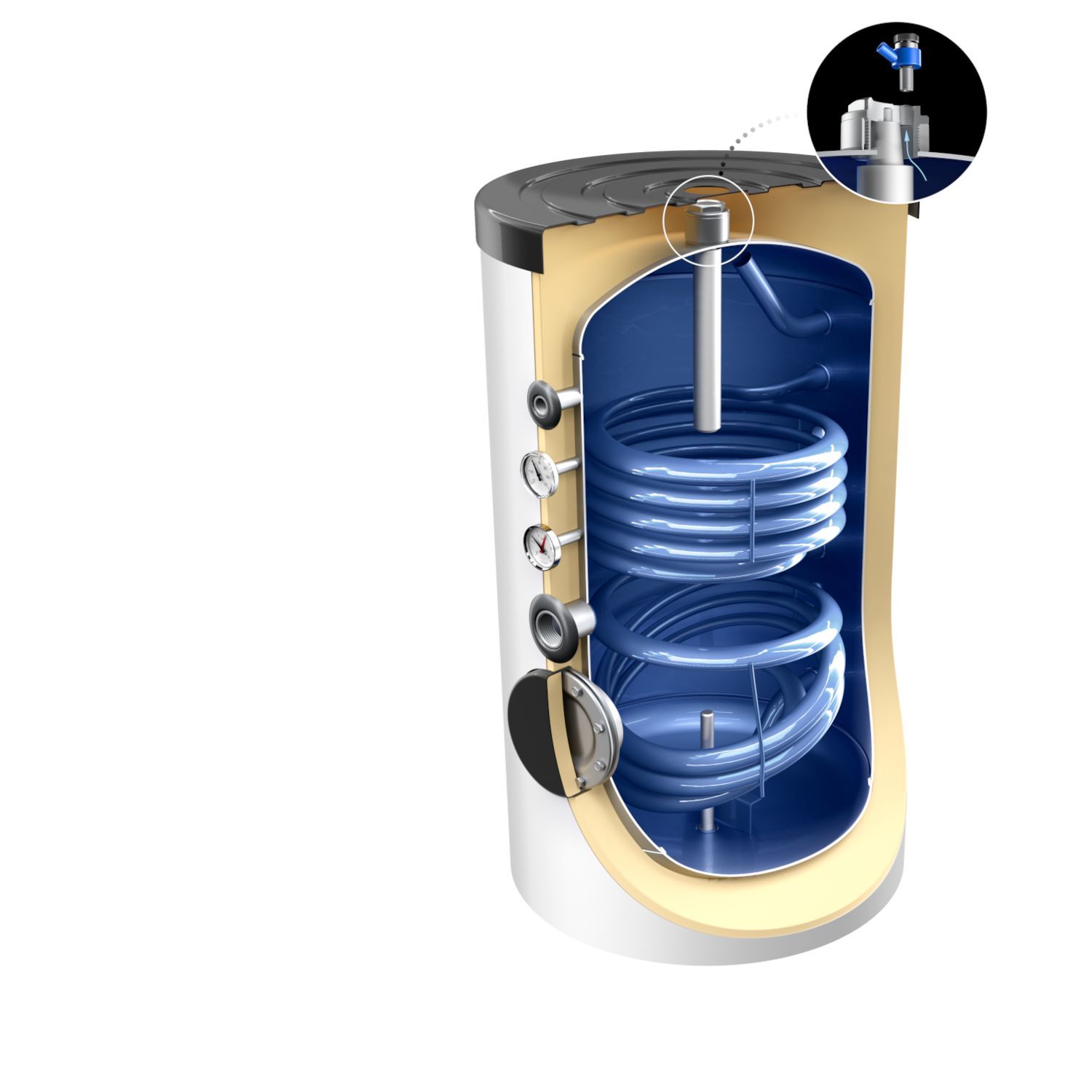 Neue Generation 160 Liter Solar-, Warmwasserspeicher, mit 2 elliptischen Wärmetausche