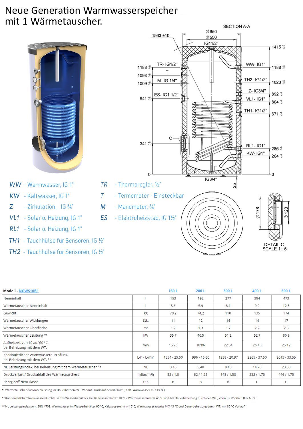 Neue Generation 200 Liter Warmwasserspeicher, mit 1 elliptischen Wärmetauscher, inkl