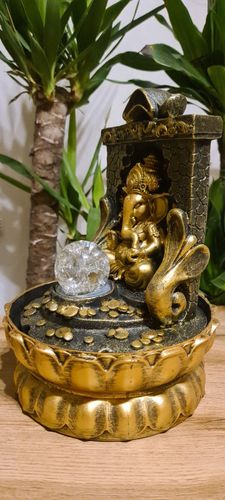Euro NEU Euro Sehr schöner und meditativer Ganesha Brunnen mit LED-Beleuchtung Der Brunnen ist aus Polystone gefertigt und verfügt über ein CE-Zertifikat Der Wassernapf besteht aus Kunststoff. Inklusive. Pumpe, Glaskugel und Adapter. Abmessungen: 27 x 20 x 20 cm Farbe: gold schwarz Versand gegen Auf