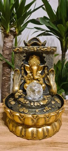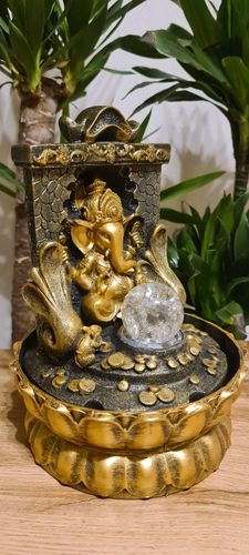 Neuer Ganesha Ganesh Brunnen mit LED und Glaskugel gold schwarz