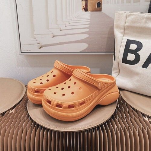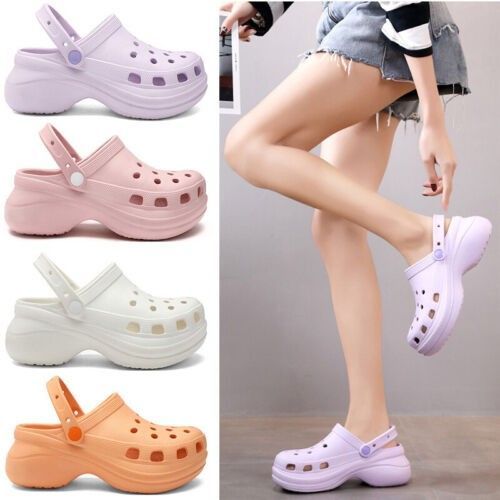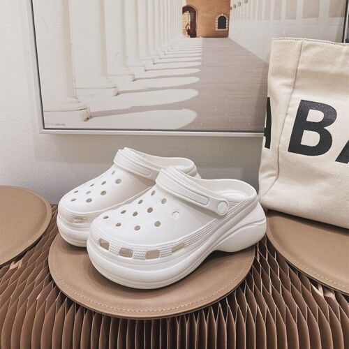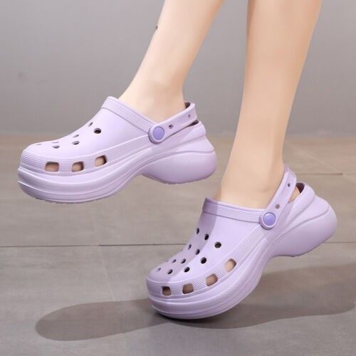 Neues Damen Geschlossene Zehe Plattform Keil Sandalen Casual Crocs Hausschuhe-DE