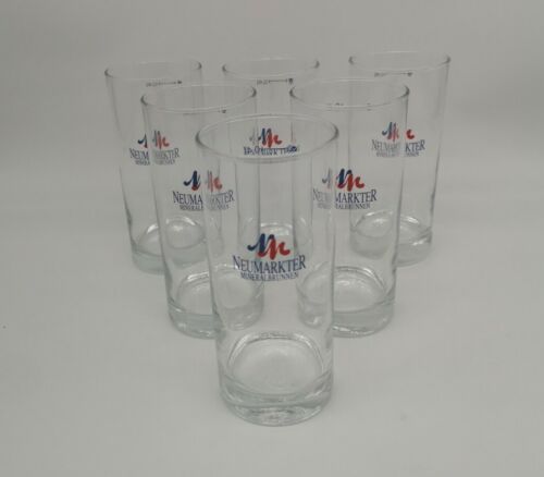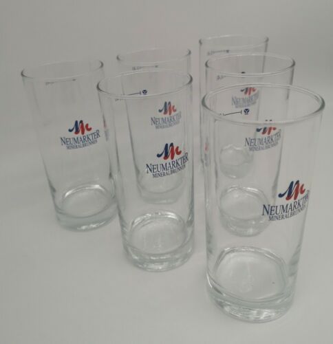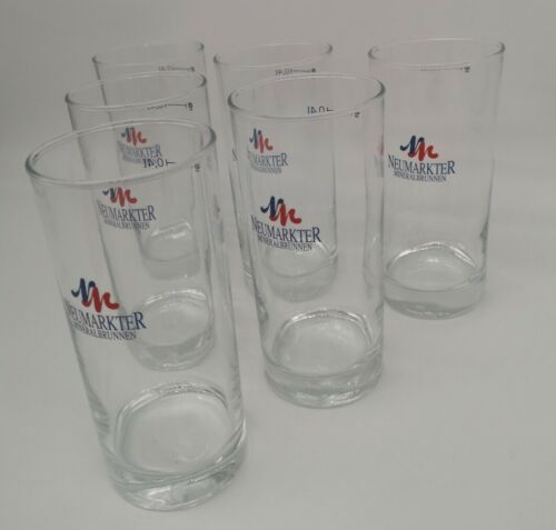6 Trinkgläser vom neumarkter Mineralbrunnen. Die Gläser sind neu. Höhe 16 cm, Breite 7,5 cm Siehe Bilder. Nicht für Kinder unter drei Jahren geeignet.