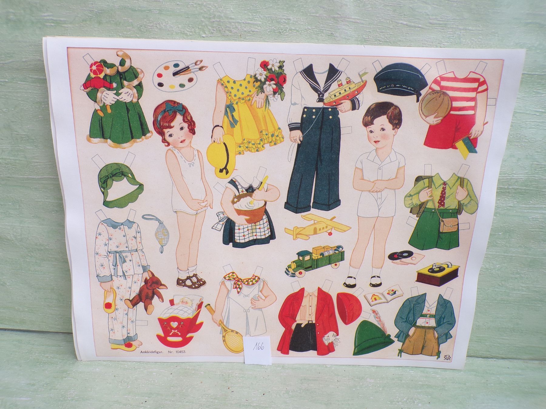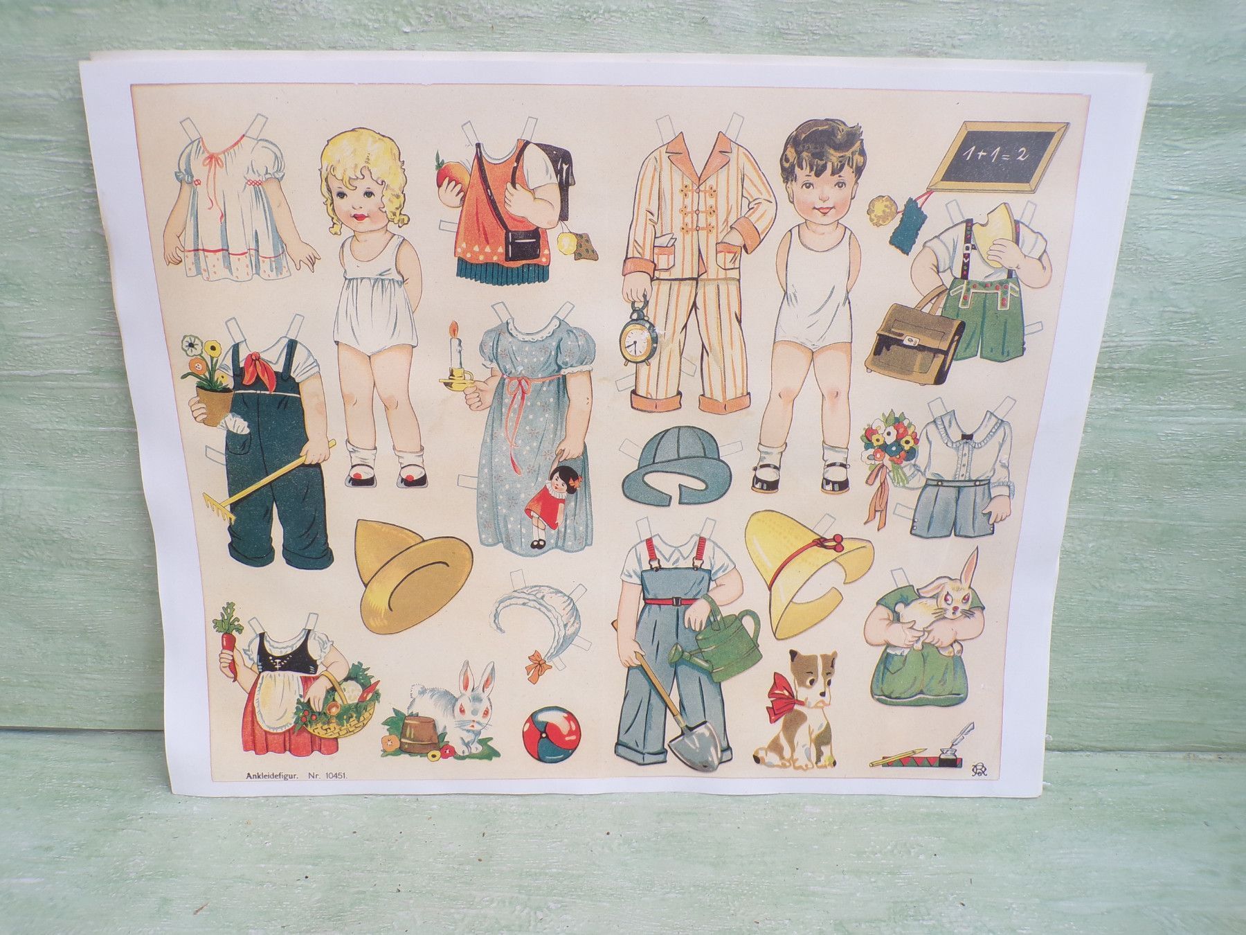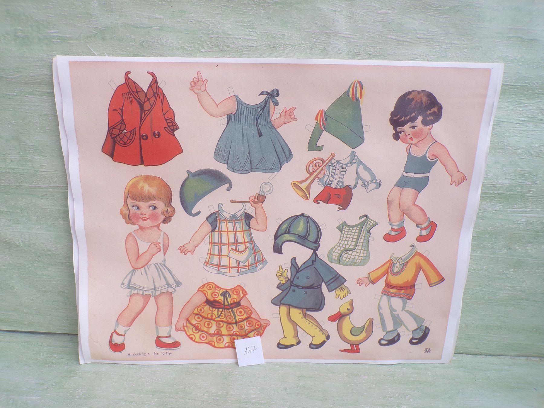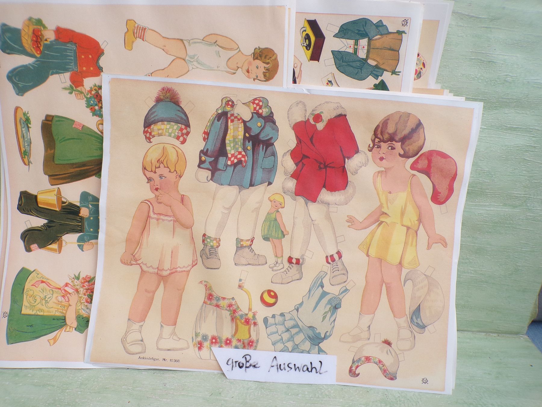 * * * Sammeln & Seltenes - Reklame & Werbung * * * * ... aus Freude an schönen Dingen ..... ca 43 x 33,5 cm Oehmigke & Riemschneider - Farbdruck um 1925 Reprint der Fa Dr Peter Schmidt , Neuruppin Ankleidefiguren . Die Bogen sind aufgrund eines Wasserschadens wellig & haben teilweise... Mehr