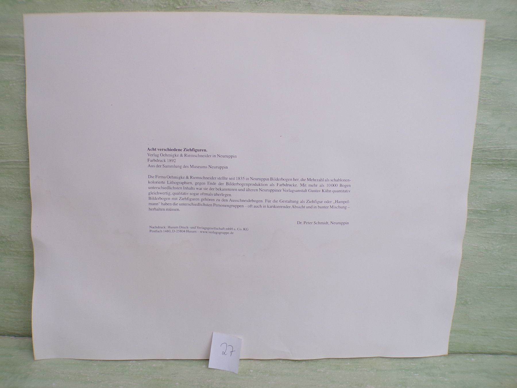 * * * Sammeln & Seltenes - Reklame & Werbung * * * * ... aus Freude an schönen Dingen ..... ....selbst die Reprint sind bereits OLDIES...... : Verlag Oehmigke & Riemschneider in Neuruppin Farbdruck 1892 aus der Sammlung des Museums Neuruppin Nachdruck: Husum Druck- und Verlagsgesellschaf... Mehr