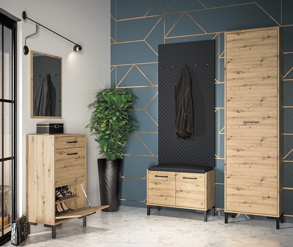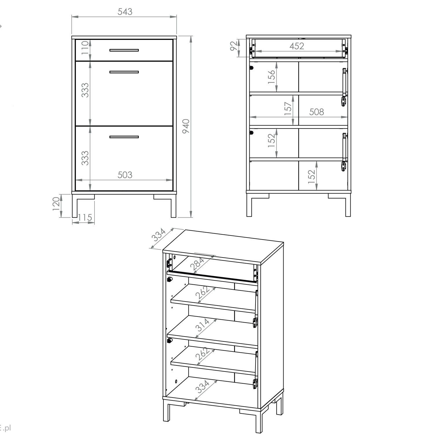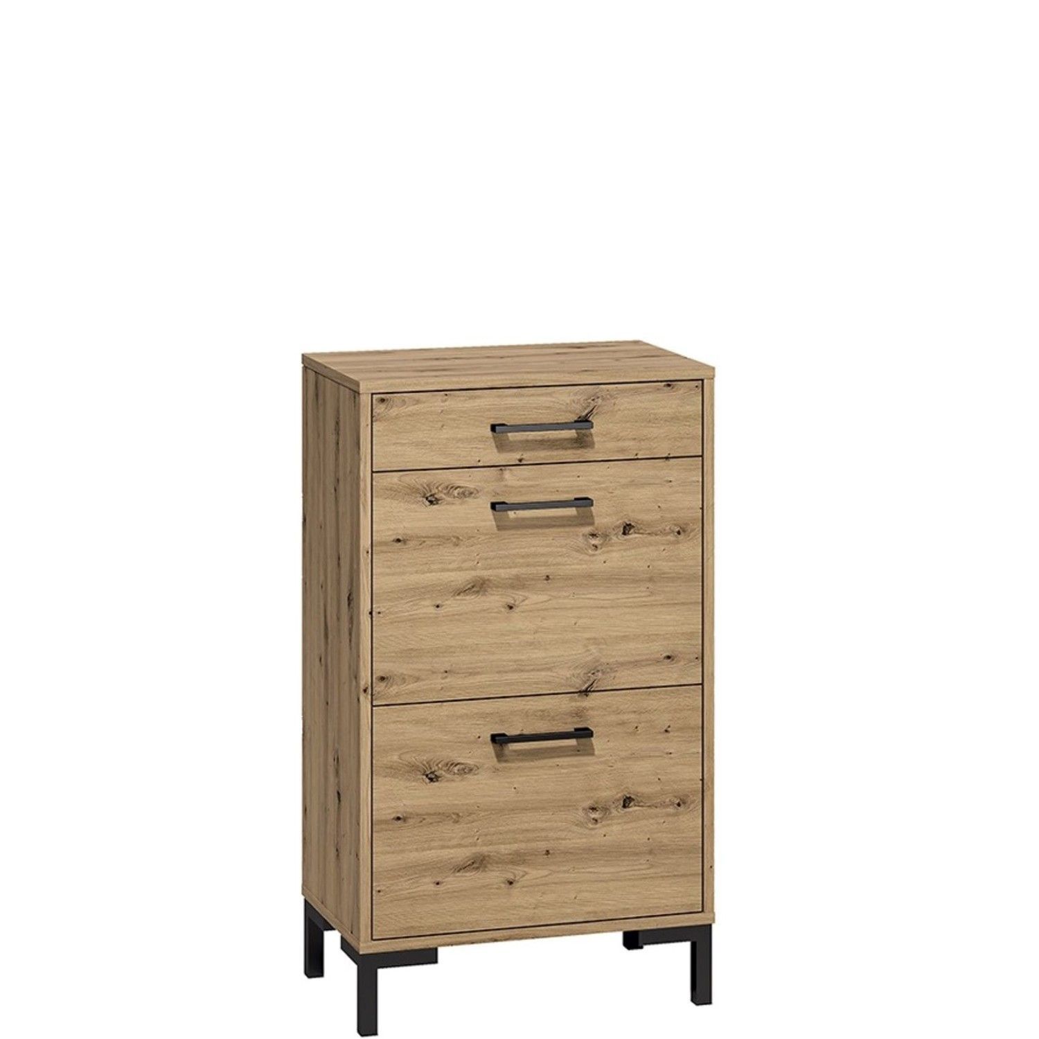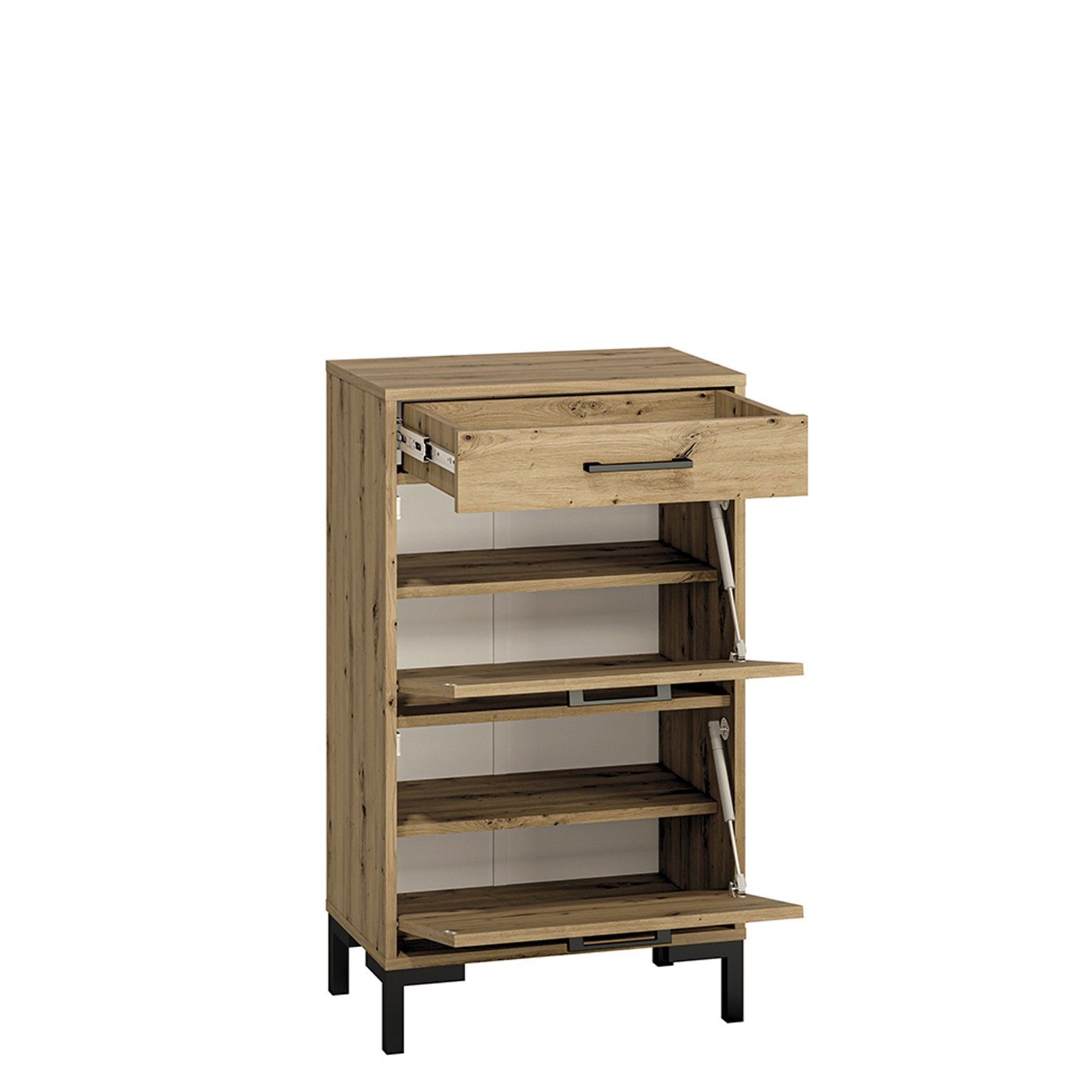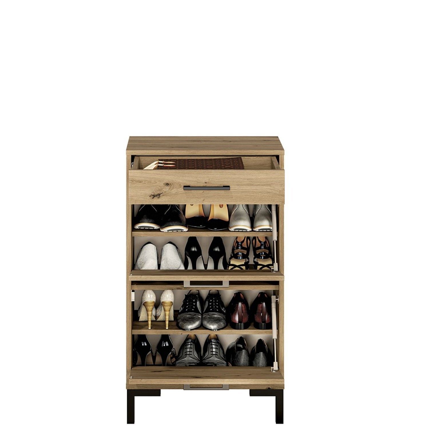 Nevio 02 Ein aufklappbarer Schuhschrank mit zwei Fächern und einer Schublade