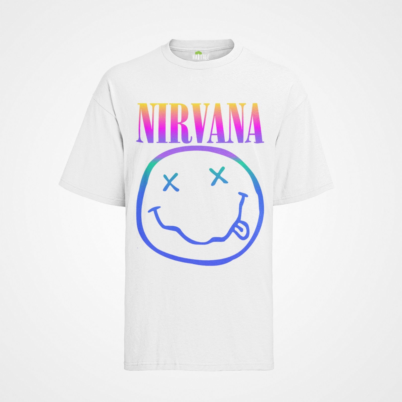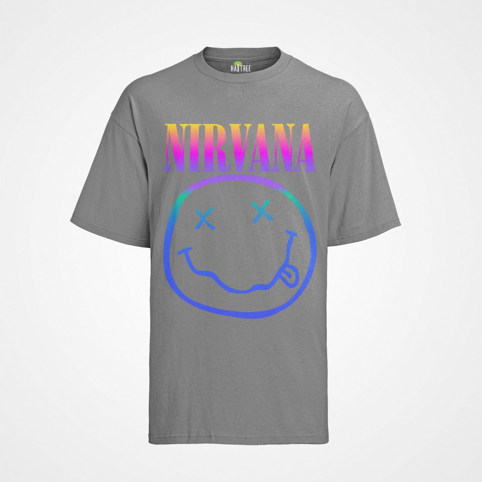 New Bio Herren T-Shirt Nirvana Smaily Bunt kurt cobain Band Rock Konzert Lachen