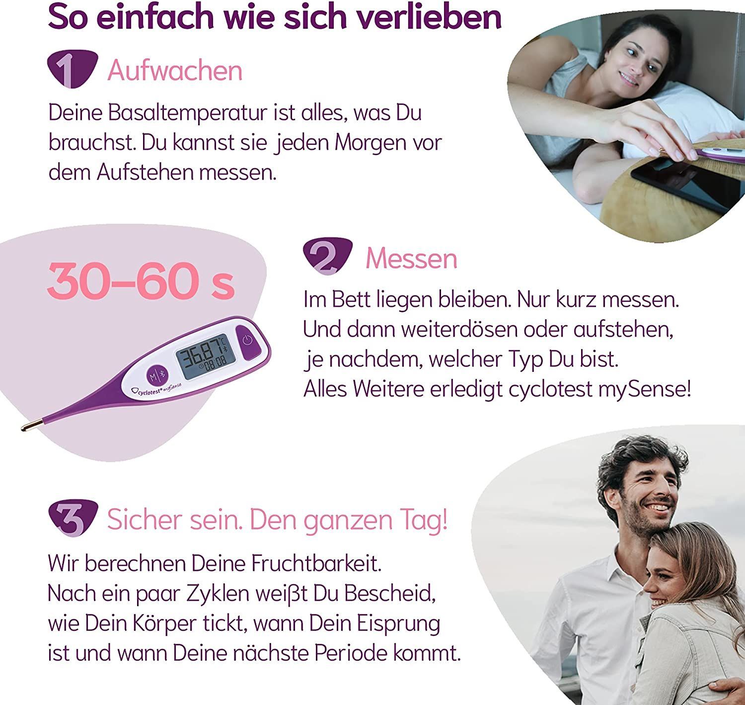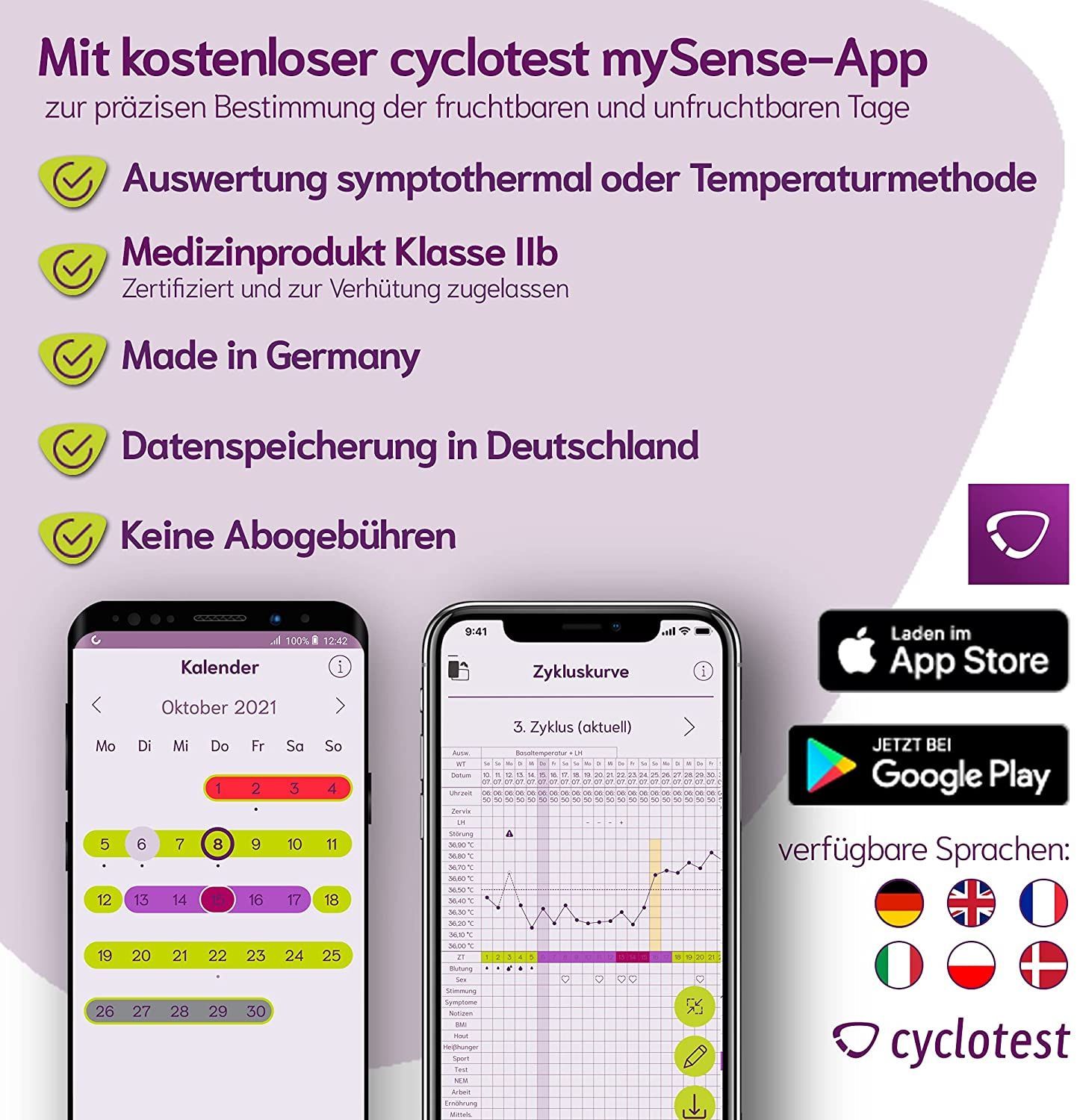 UEBE NEW Cyclotest mySense - Basalthermometer Bluetooth ohne Abokosten PZN: 14886326