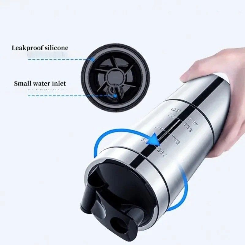This double-layer shaker is made from stainless steel with vacuum insulation and a detachable design. It´s ideal for mixing protein powder during sports and outdoor activities.