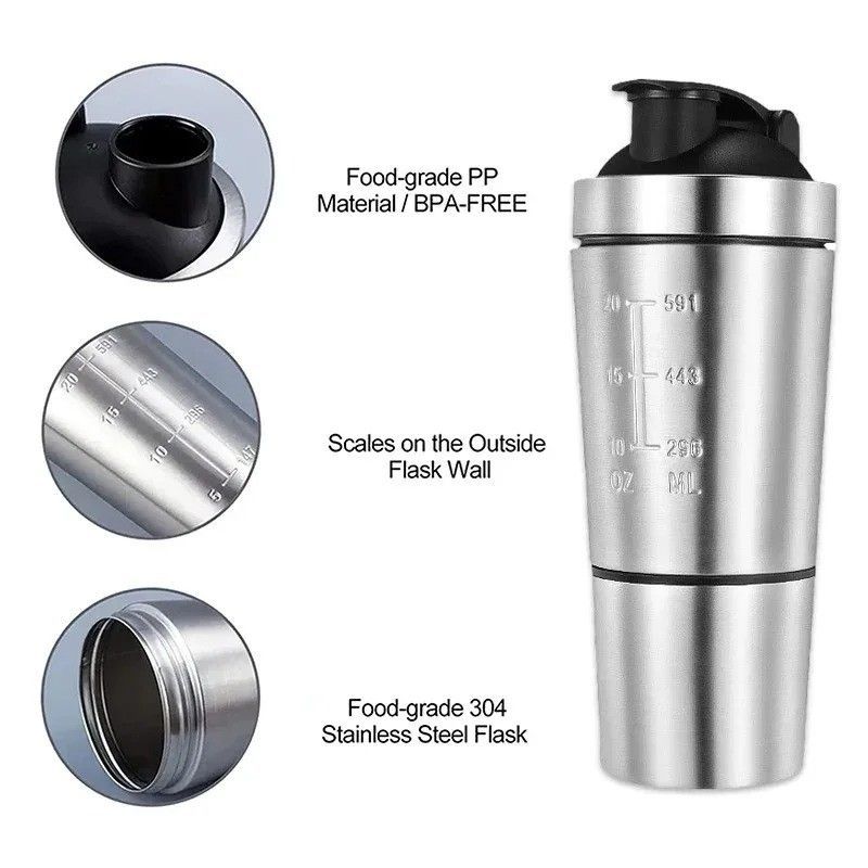 New Detachable Double Layer Stainless Steel Vacuum Protein Shaker Bottle for Sports