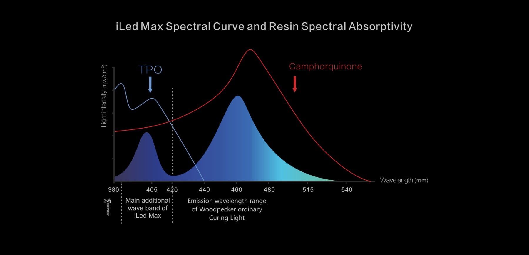 NEW!woodpecker iLED MAX, Fokussiertere Lichtleistung!1000-2500mW/ cm2,1s curing, CE