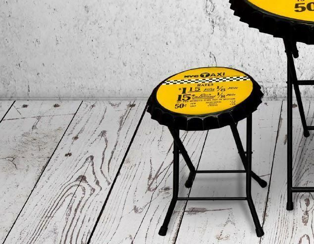 New York Taxi Klapphocker Yellow Cab 35x39x48cm- Rates Taxi Service Metall
