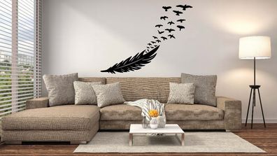 • Wandtattoo mit Federn Schwarz 25x 80cm