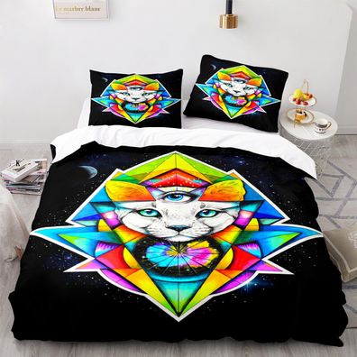 Mysteriose Katze Bettwasche Set-25 Kissenbezug80x80 Anpassbar Bettbezug135x200