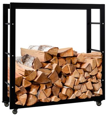 Kaminholzregal innen Metall SATLO Schwarz 25x80x80cm mit Rollen Brennholzregal innen