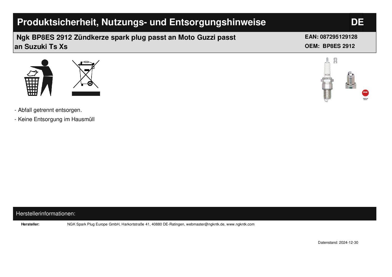 NGK Ngk BP8ES 2912 Zündkerze spark plug passt an Moto Guzzi passt an Suzuki Ts Xs