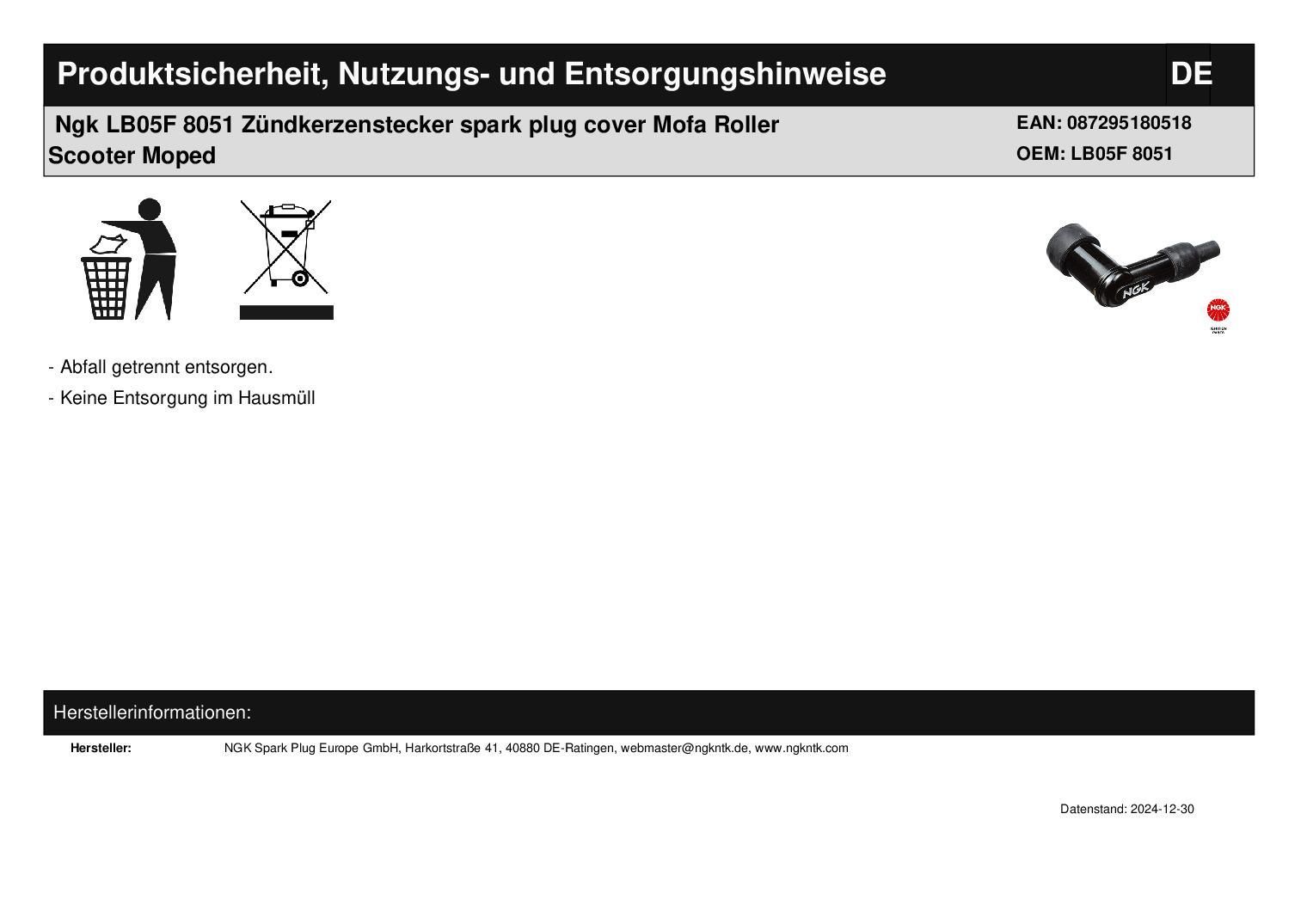 NGK Ngk LB05F 8051 Zündkerzenstecker spark plug cover Mofa Roller Scooter Moped