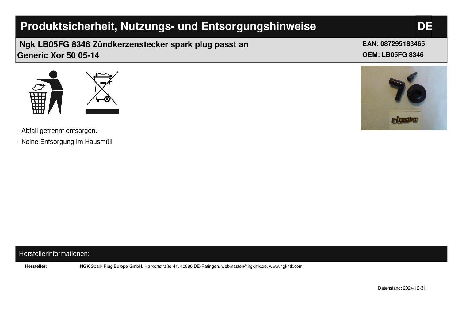 NGK Ngk LB05FG 8346 Zündkerzenstecker spark plug passt an Generic Xor 50 05-14