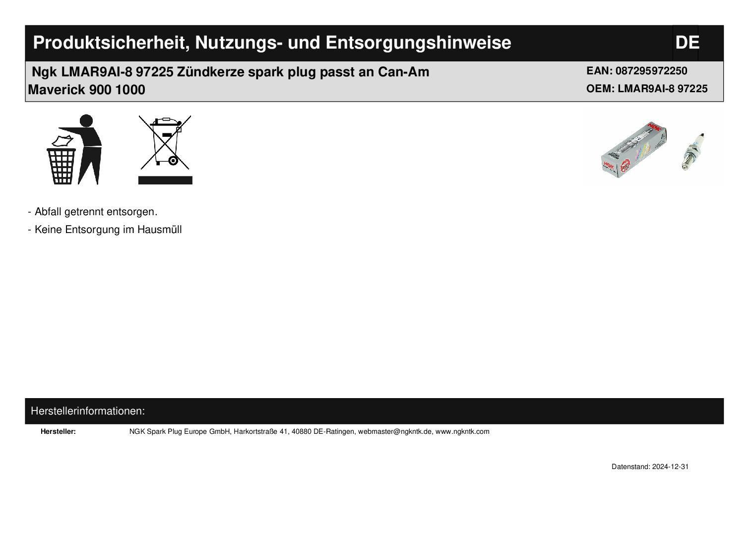 NGK Ngk LMAR9AI-8 97225 Zündkerze spark plug passt an Can-Am Maverick 900 1000
