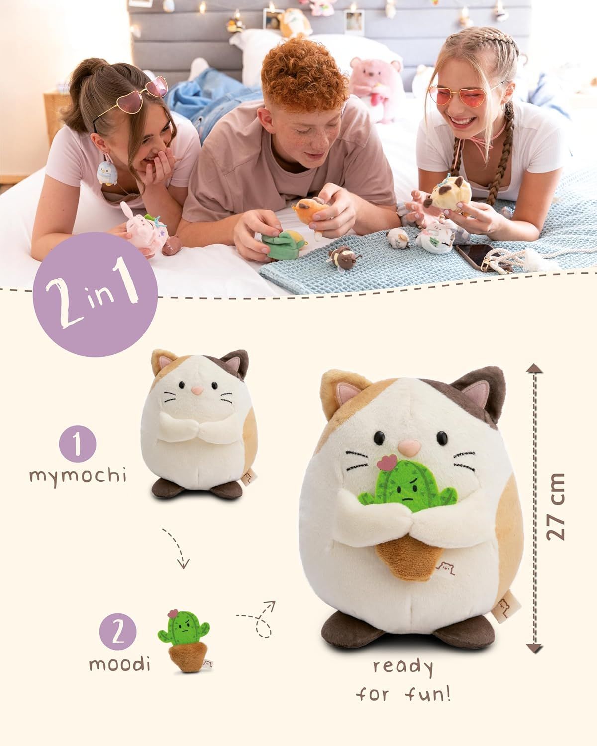 Nici GmbH NICI Mymochi Kuscheltier Katze Angy 27 cm mit Kaktus, Flauschiges Stofftier zum Kusch