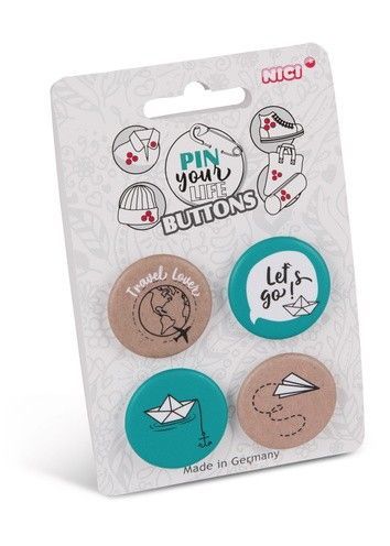 NICI NICI Pin your Life 4er Set Buttons Motiv "Travel Lover" Neuware