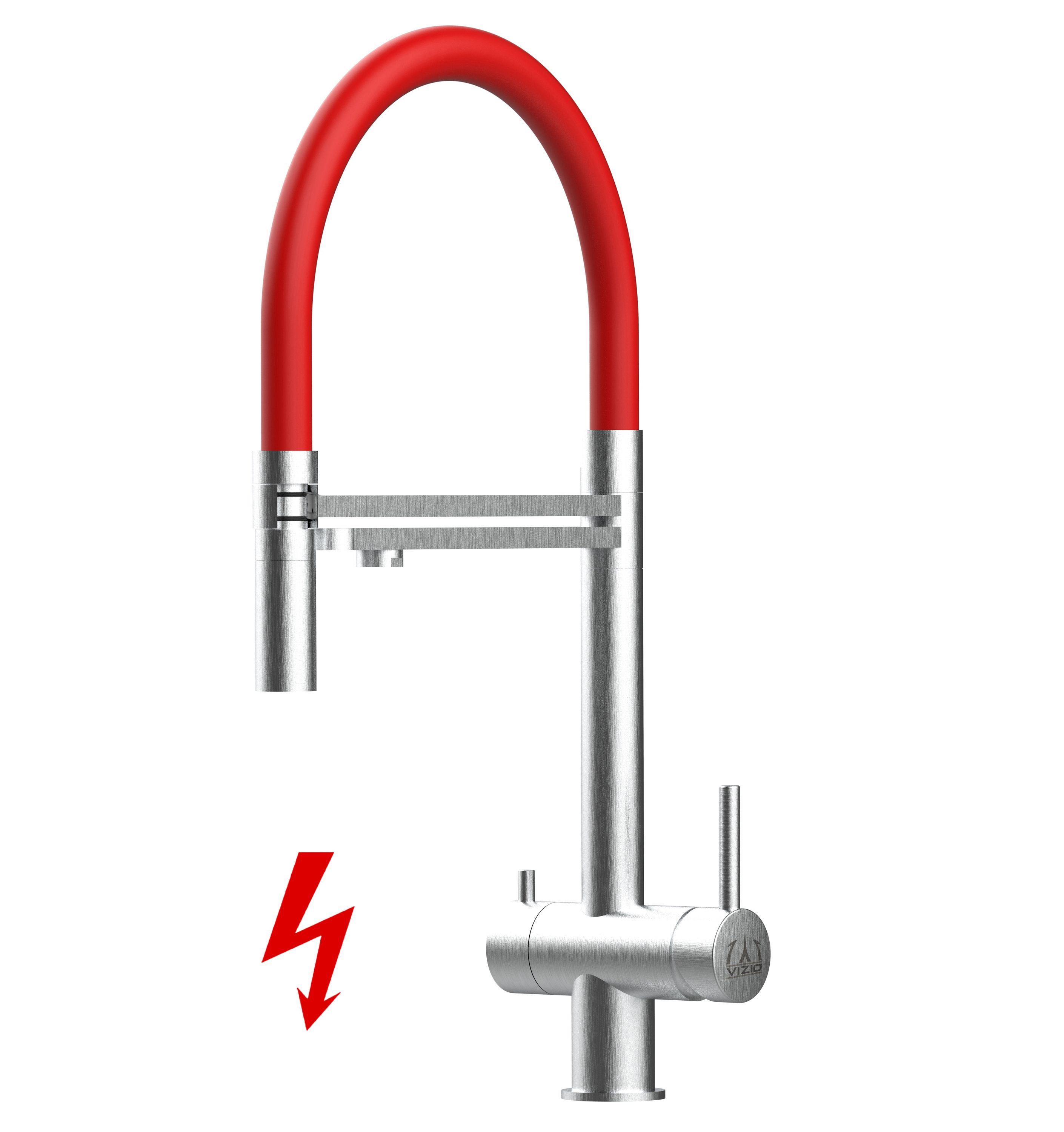 Niederdruck 3 Wege Küchenarmatur Edelstahl Gebürstet, Rot Auslauf - 2 strahl Brause