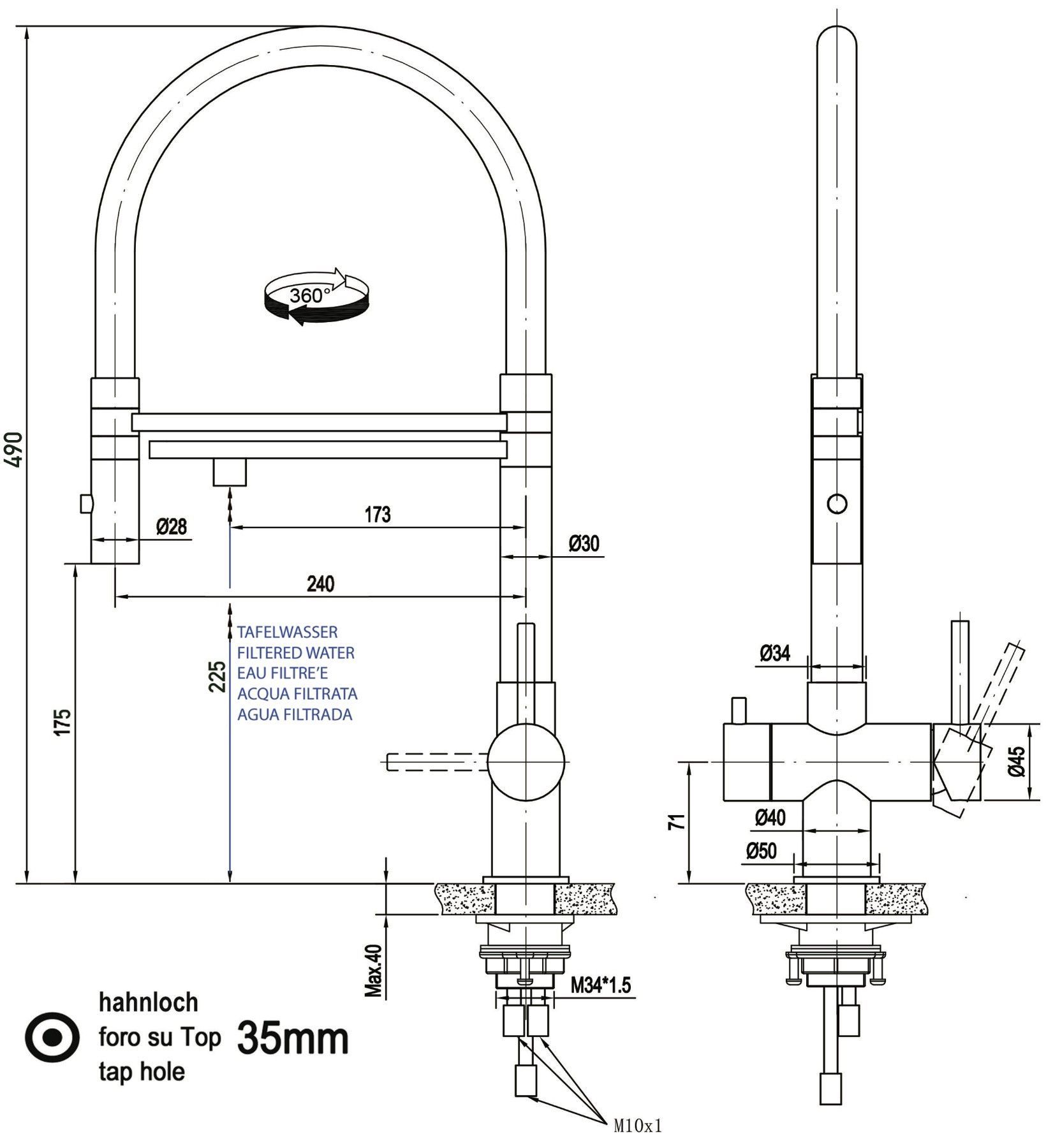 • Empfohlener Arbeitsdruck: min. 1,5bar - max 4,5bar / Empfohlene Wassertemperatur: min. 5°C - max 65°