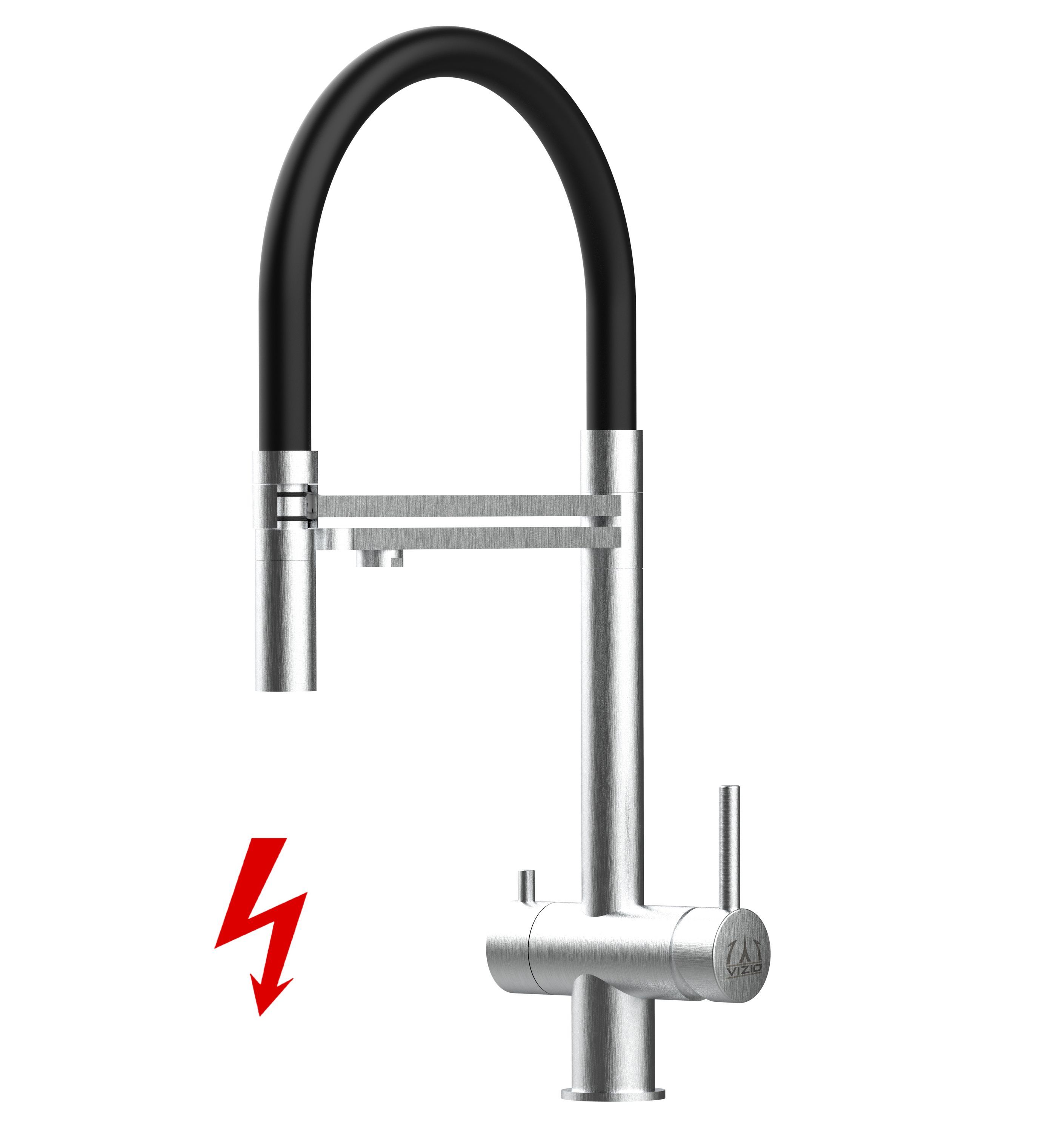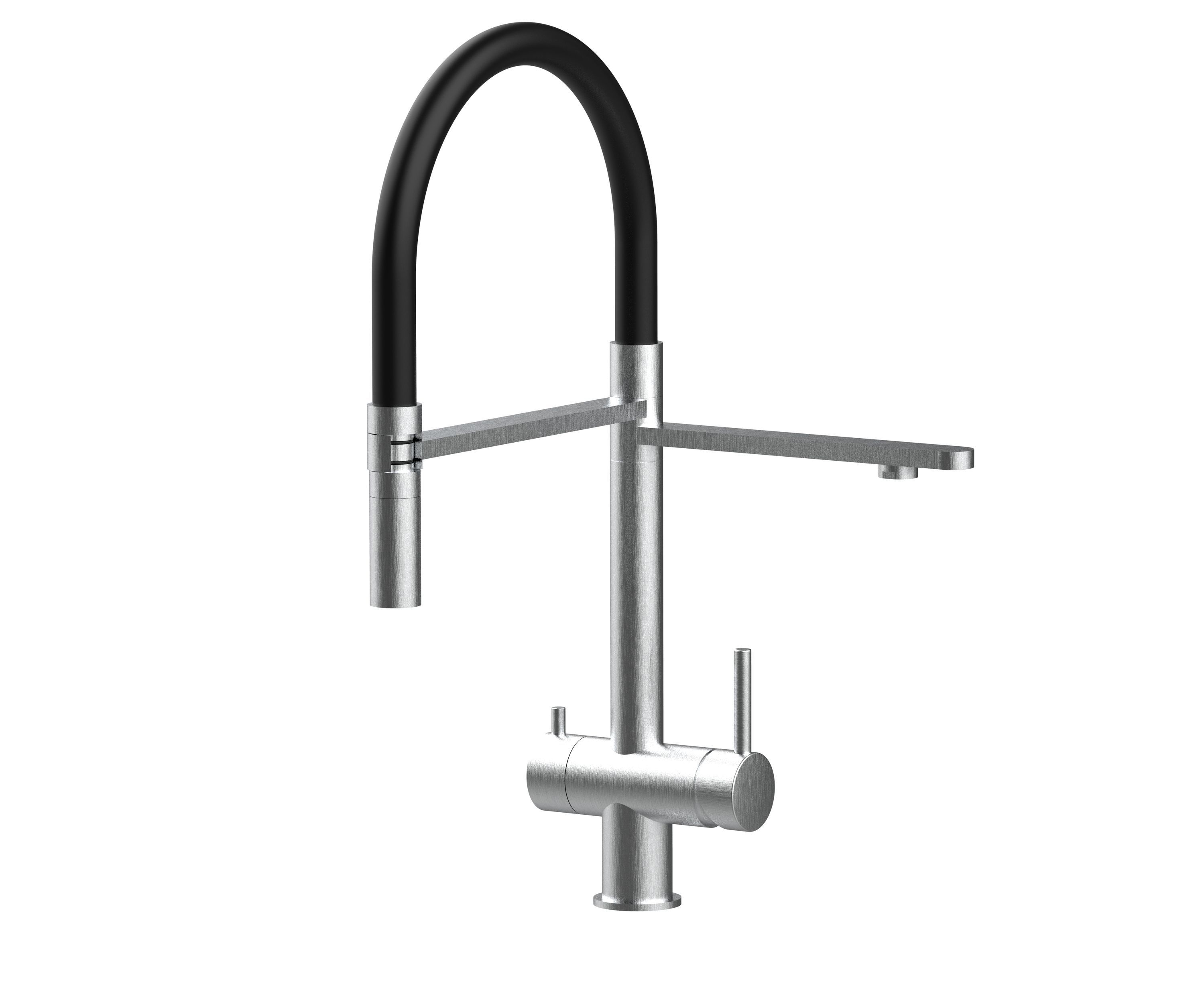 Niederdruck 3 Wege Küchenarmatur Edelstahl Gebürstet Schwarz Auslauf - 2strahl Brause