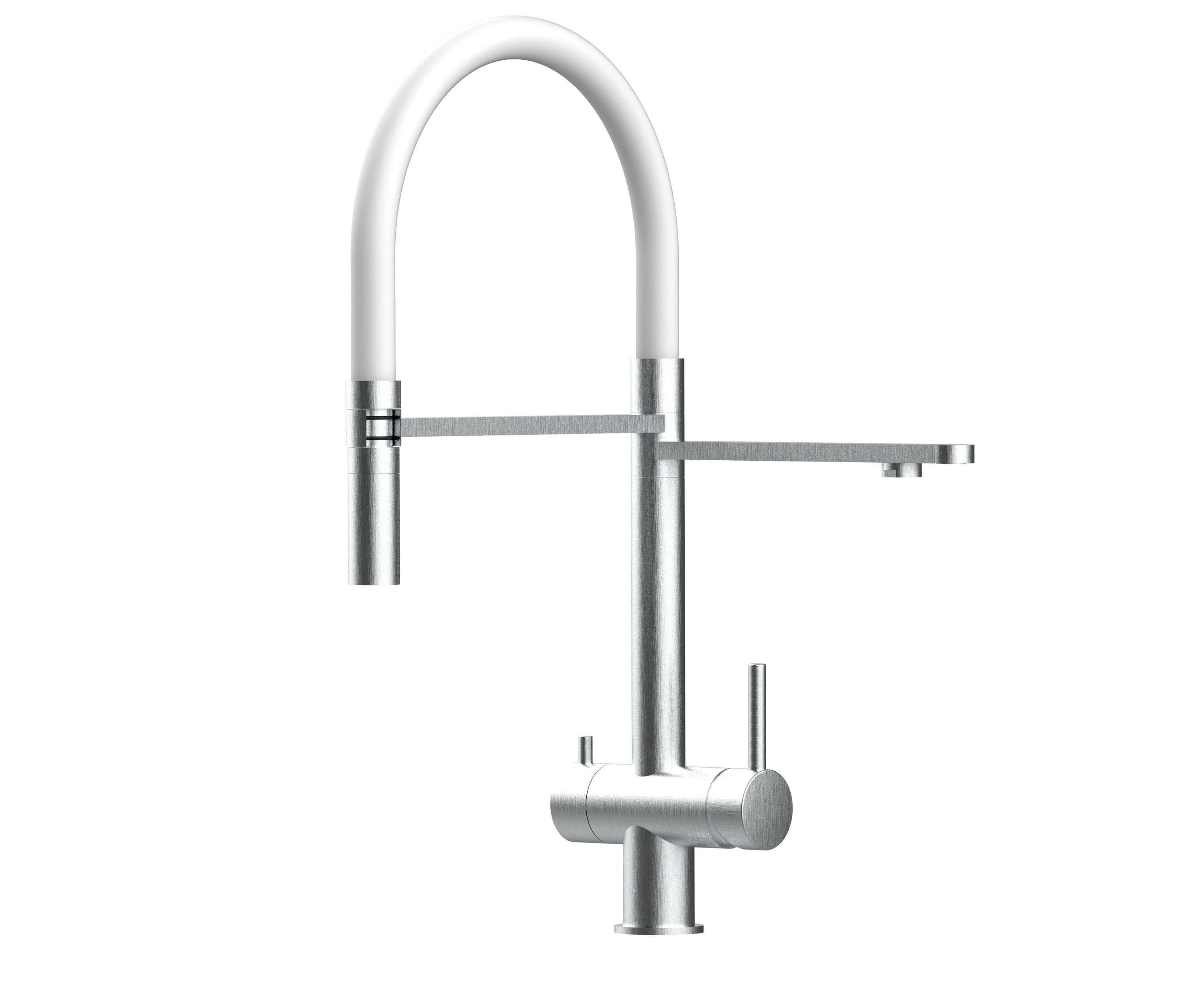 Niederdruck 3 Wege Küchenarmatur Edelstahl Gebürstet, Weiß Auslauf - 2 strahl Brause