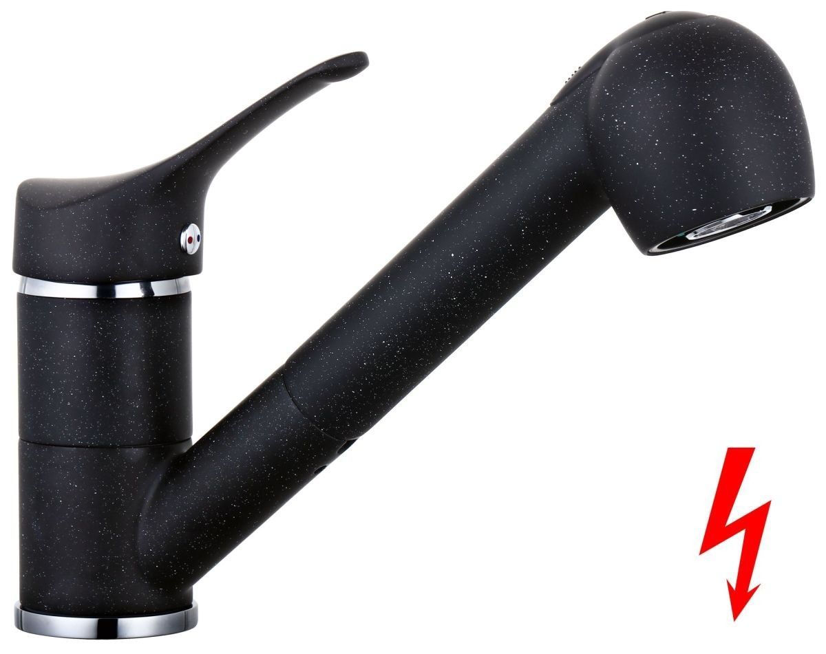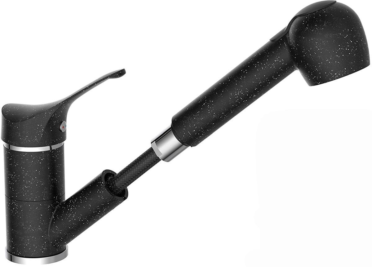 Niederdruck Spültischarmatur mit Geschirrbrause Küchenarmatur Granit schwarz