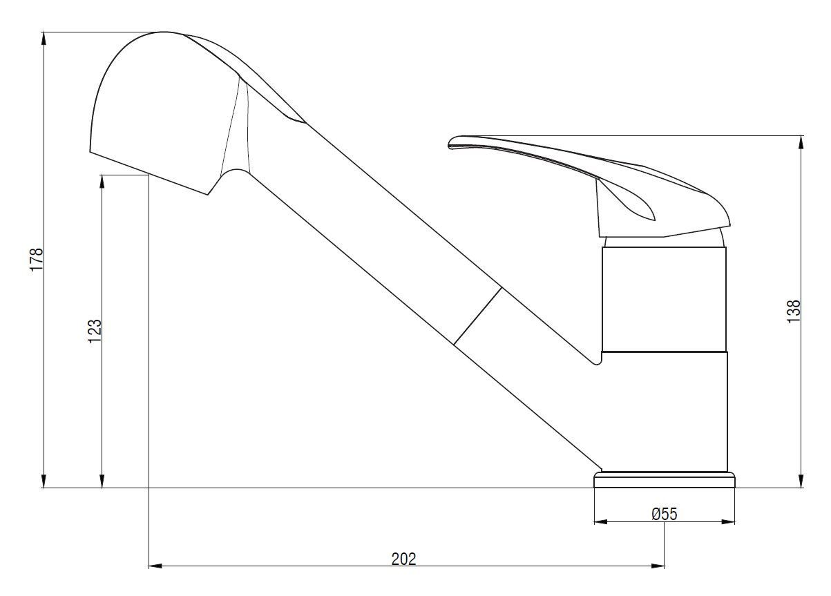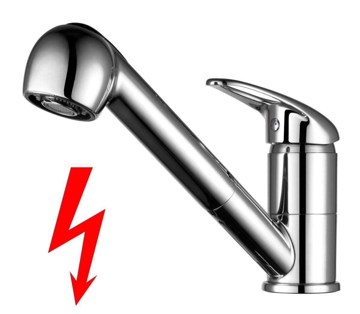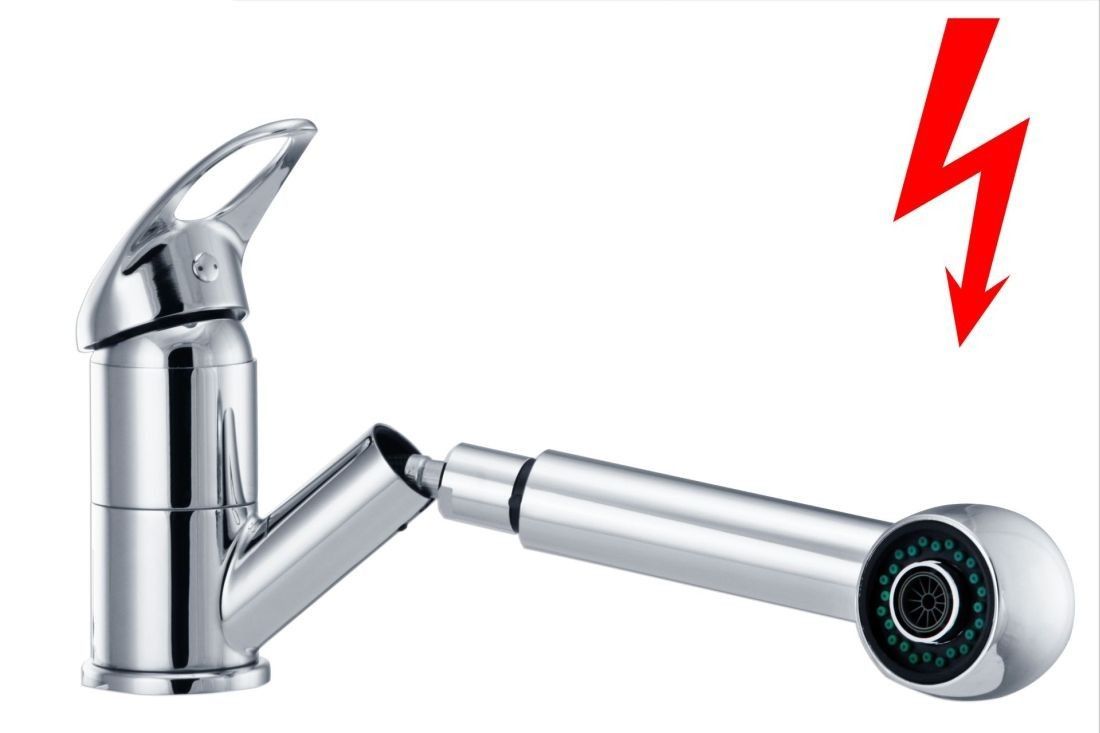 Niederdruck Spültischarmatur mit herausziehbarer Geschirrbrause, Hebel offen, Chrom
