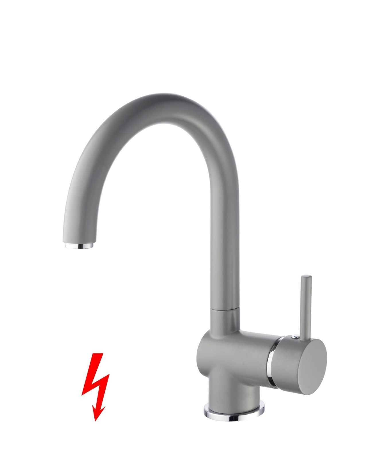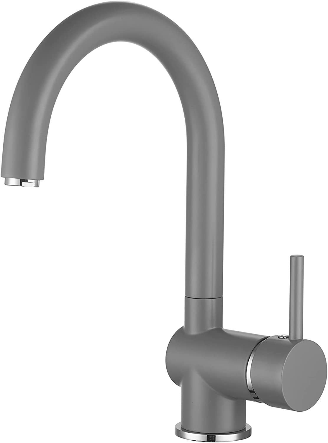 Niederdruck Spültischarmatur Prag Küchenarmatur Rundbogen Auslauf, matt hellgrau