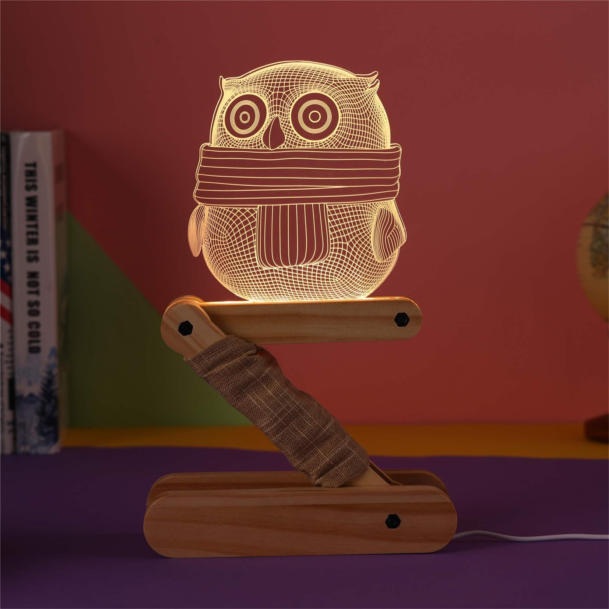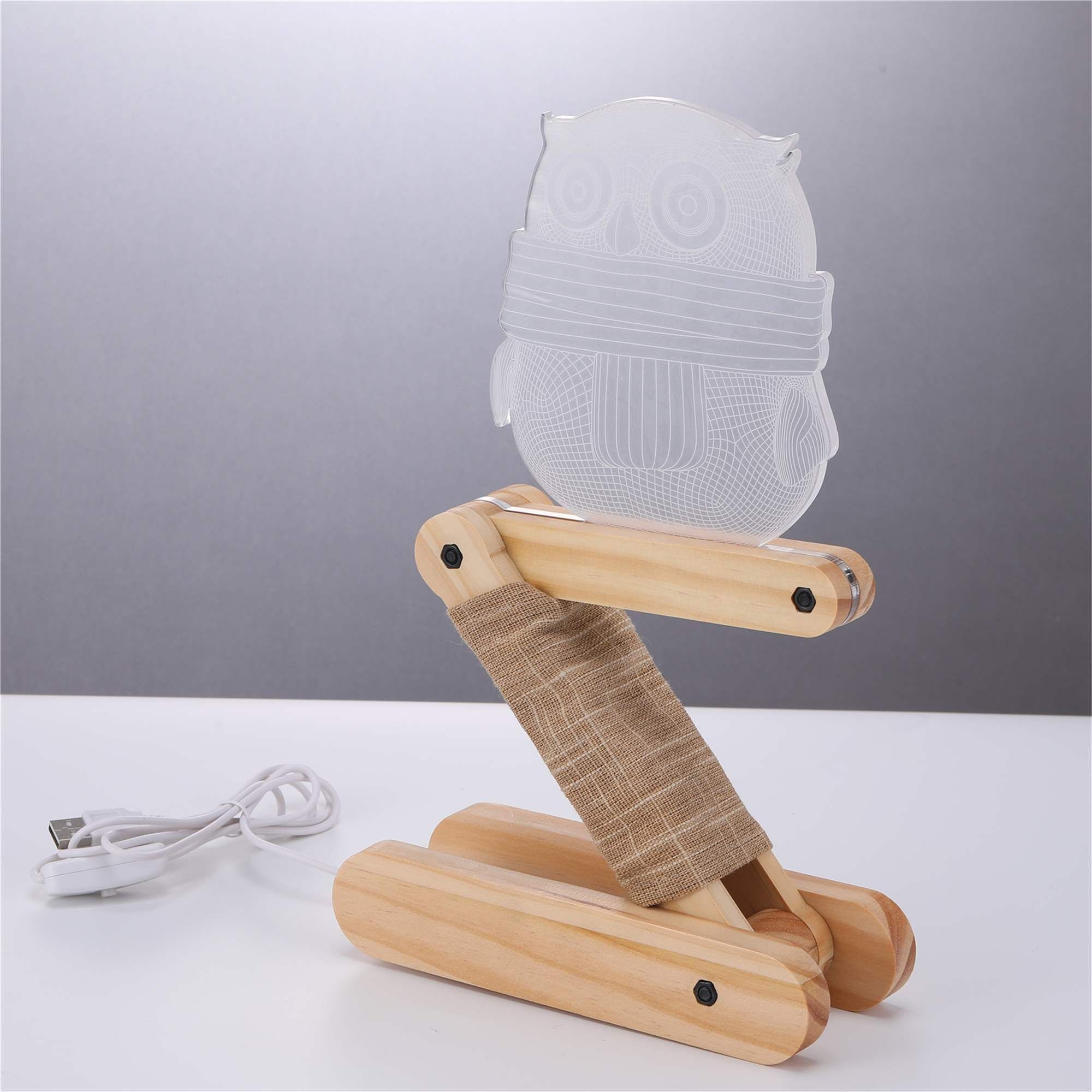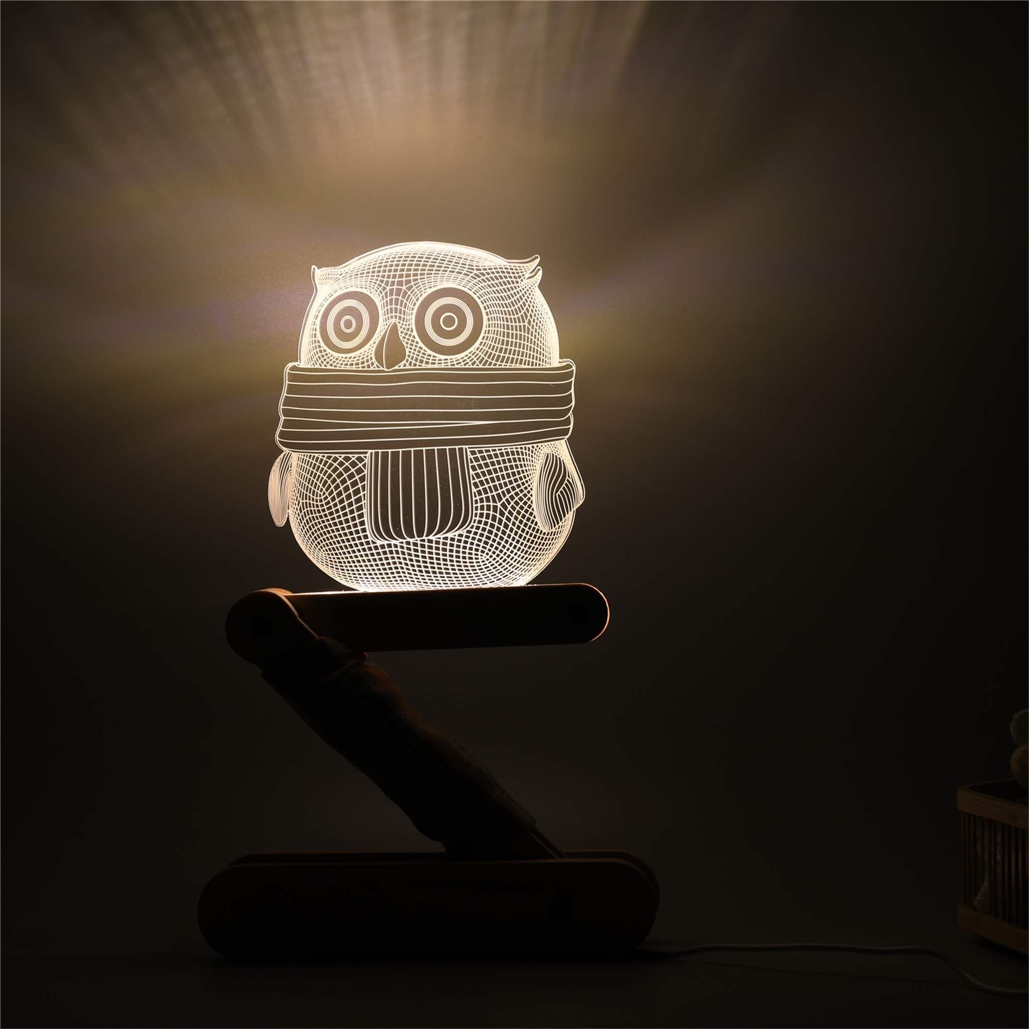 niedliche 3D LED Motiv-Lampe Eule Holz-Design Wohnlicht Nachttischlampe Tisch-Leuchte