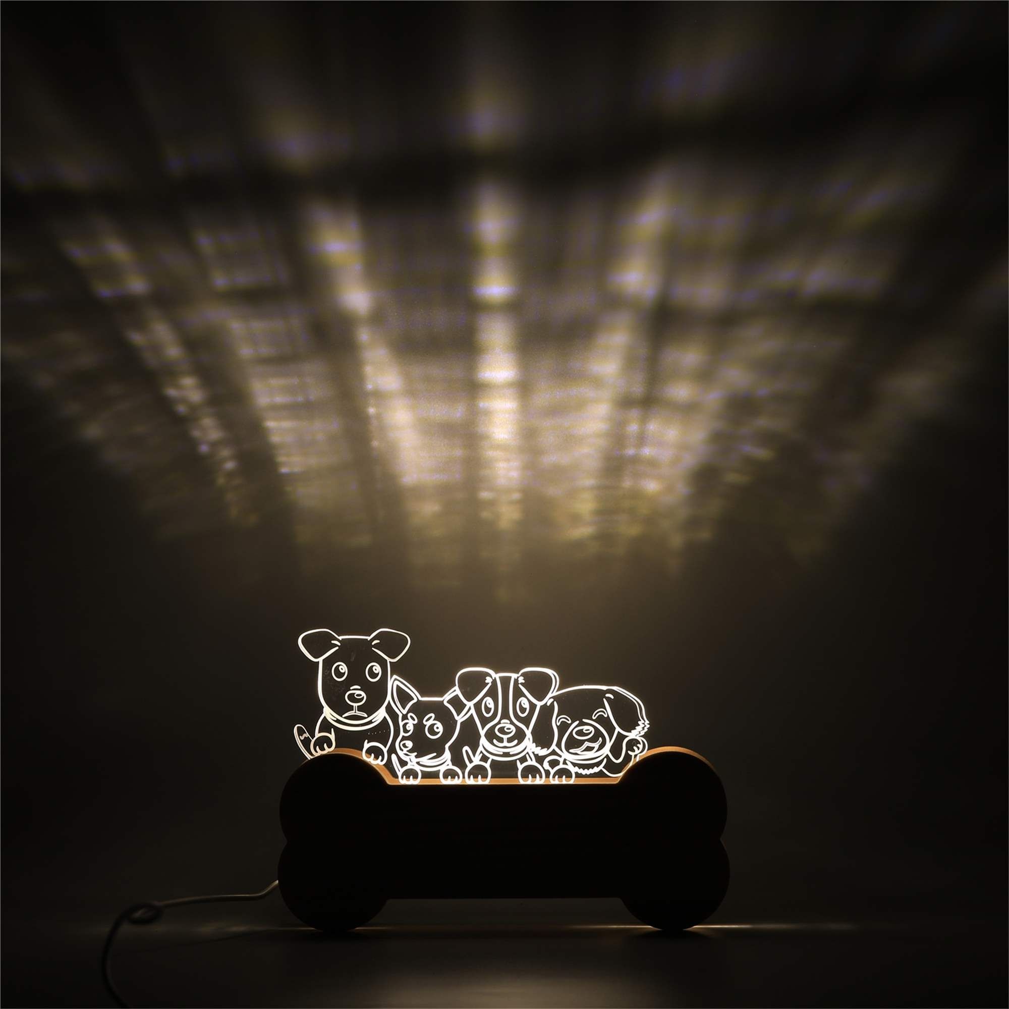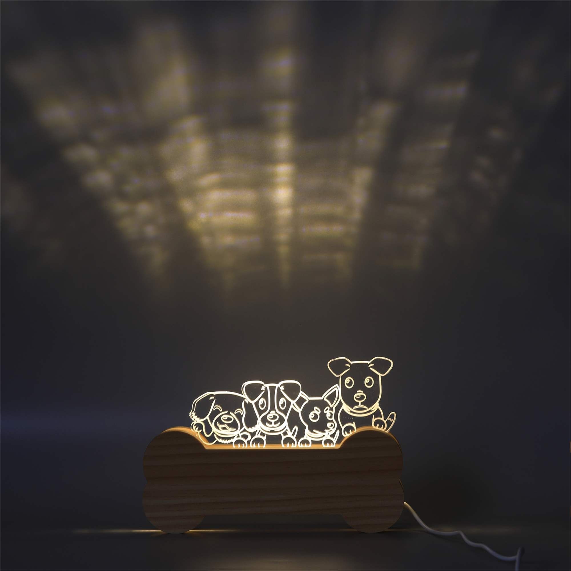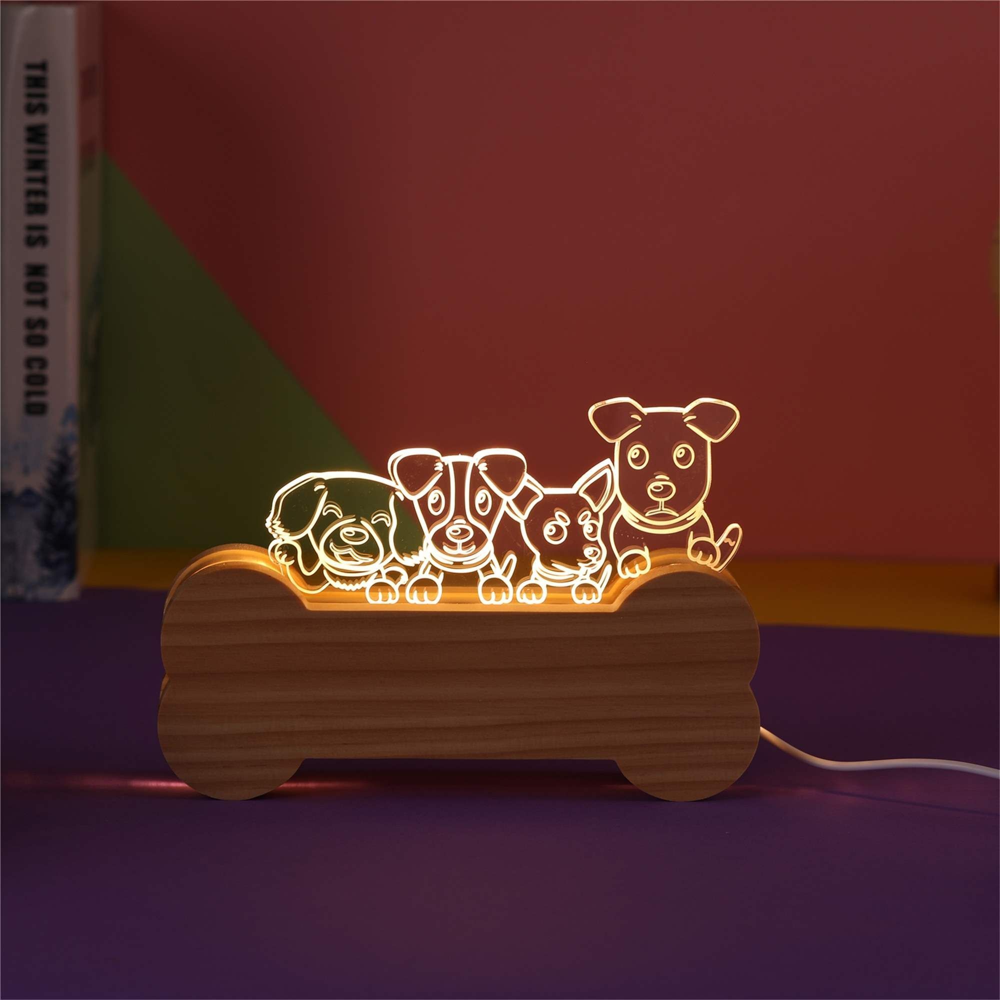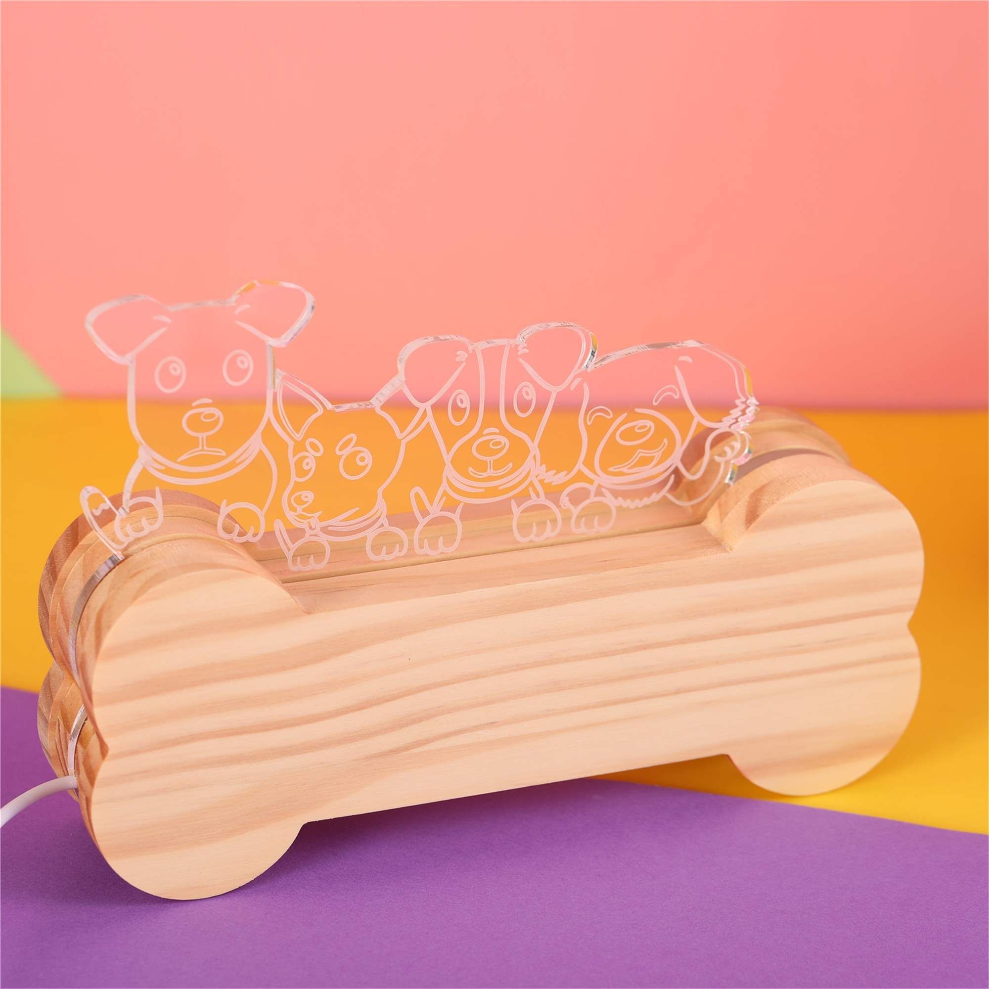 niedliche 3D LED Motiv-Lampe Hunde Familie Holz-Design Wohnlicht Nachttischlampe Tisc
