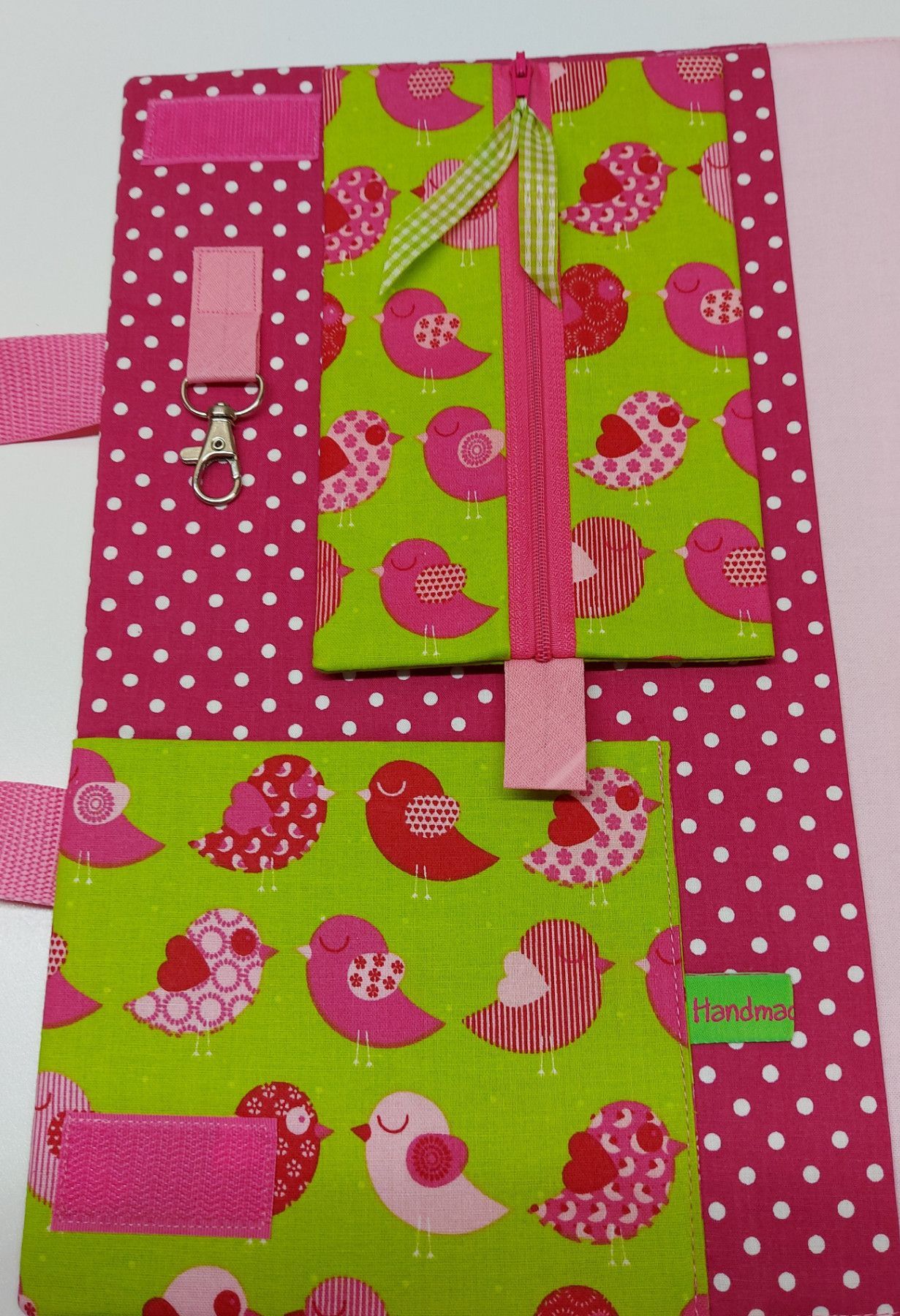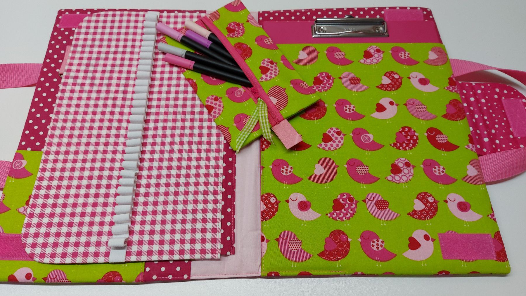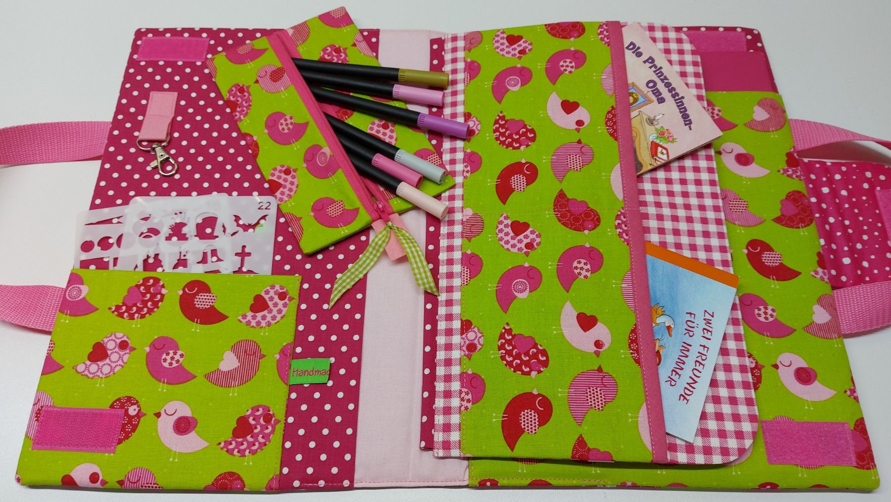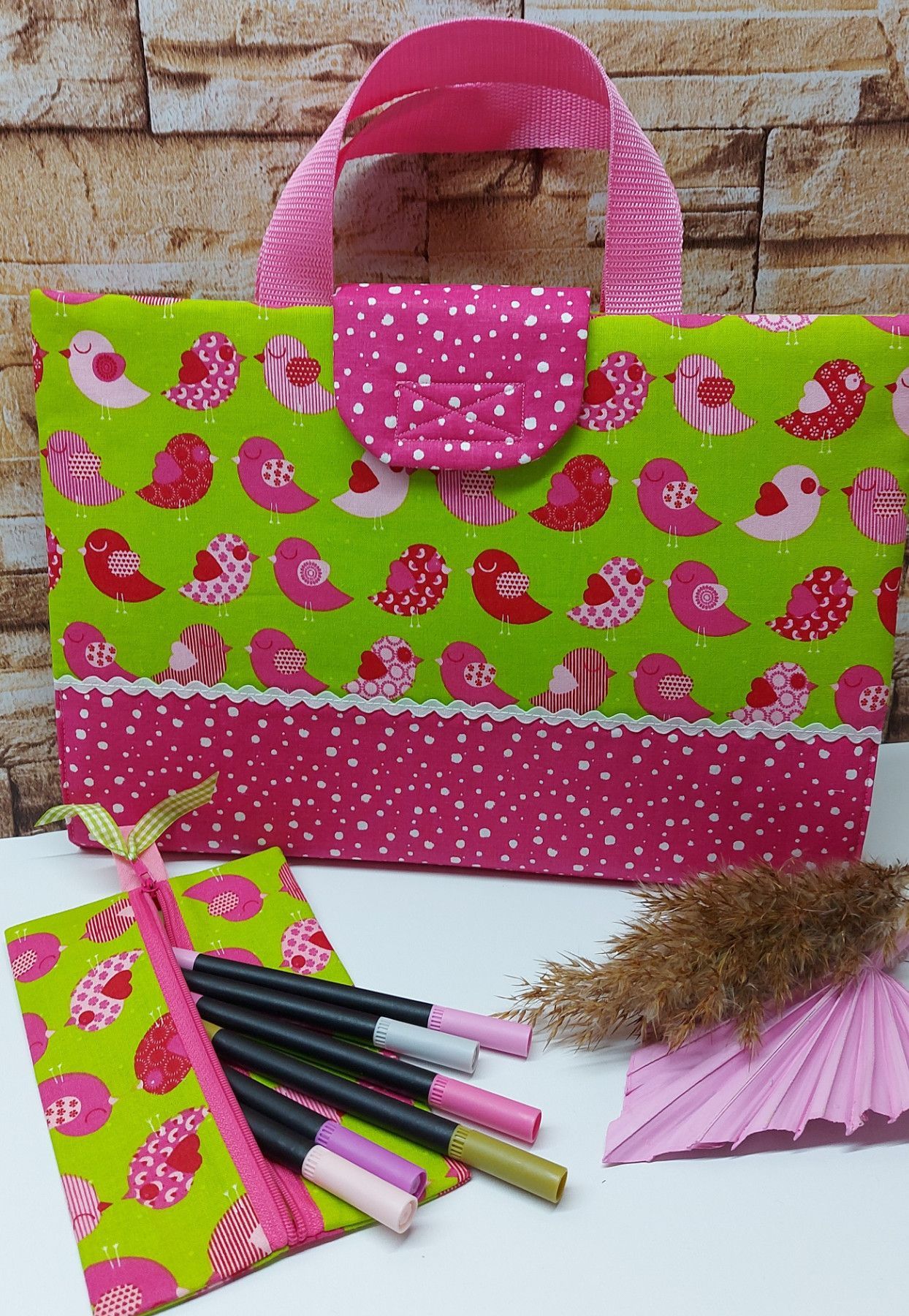 Niedliche Maltasche/Zeichentasche für Kids - Vögelchen grün/pink