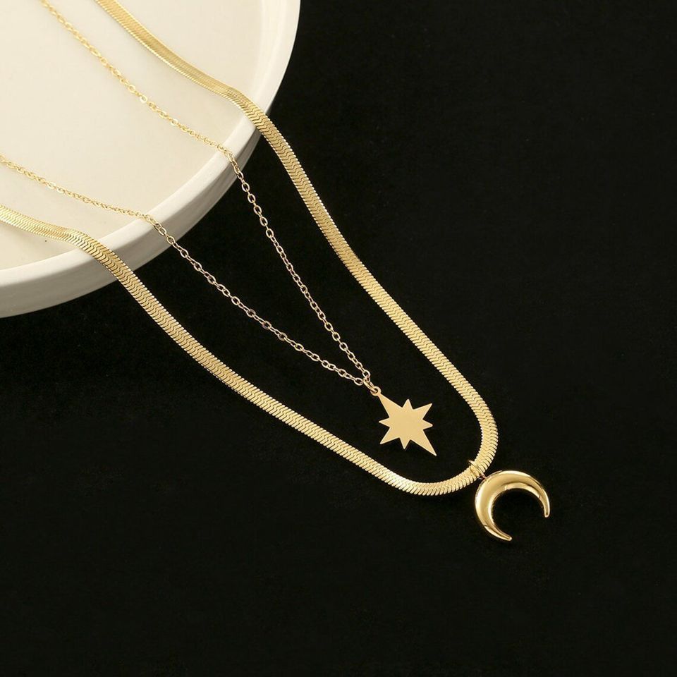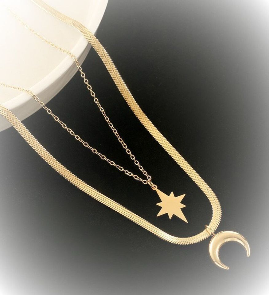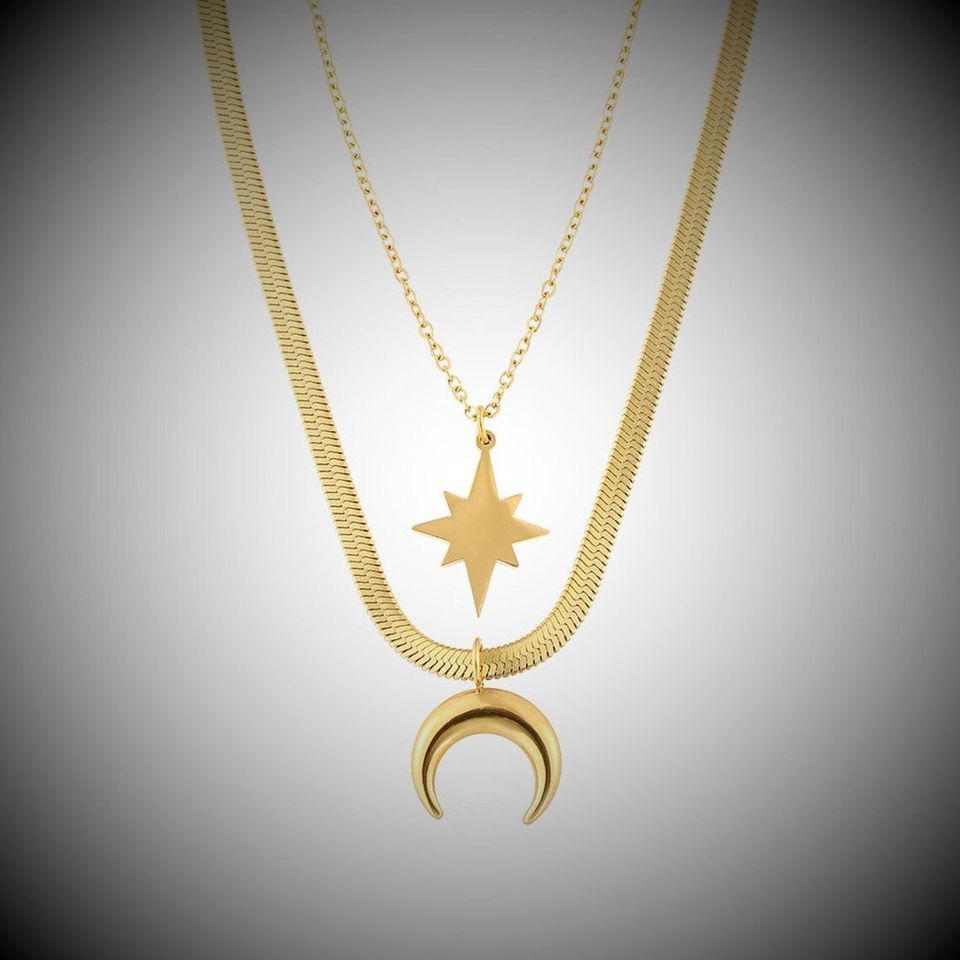 Wunderschöne handgemachte Halskette zweiteilig mit Sonne und Mond Frauen Schmuck Kette Das ideale Geschenk oder einfach nur zum selber tragen. Metal: Edelstahl vergoldet
