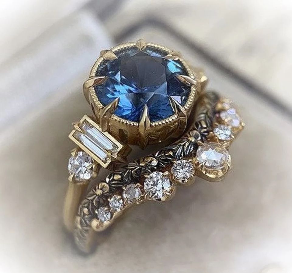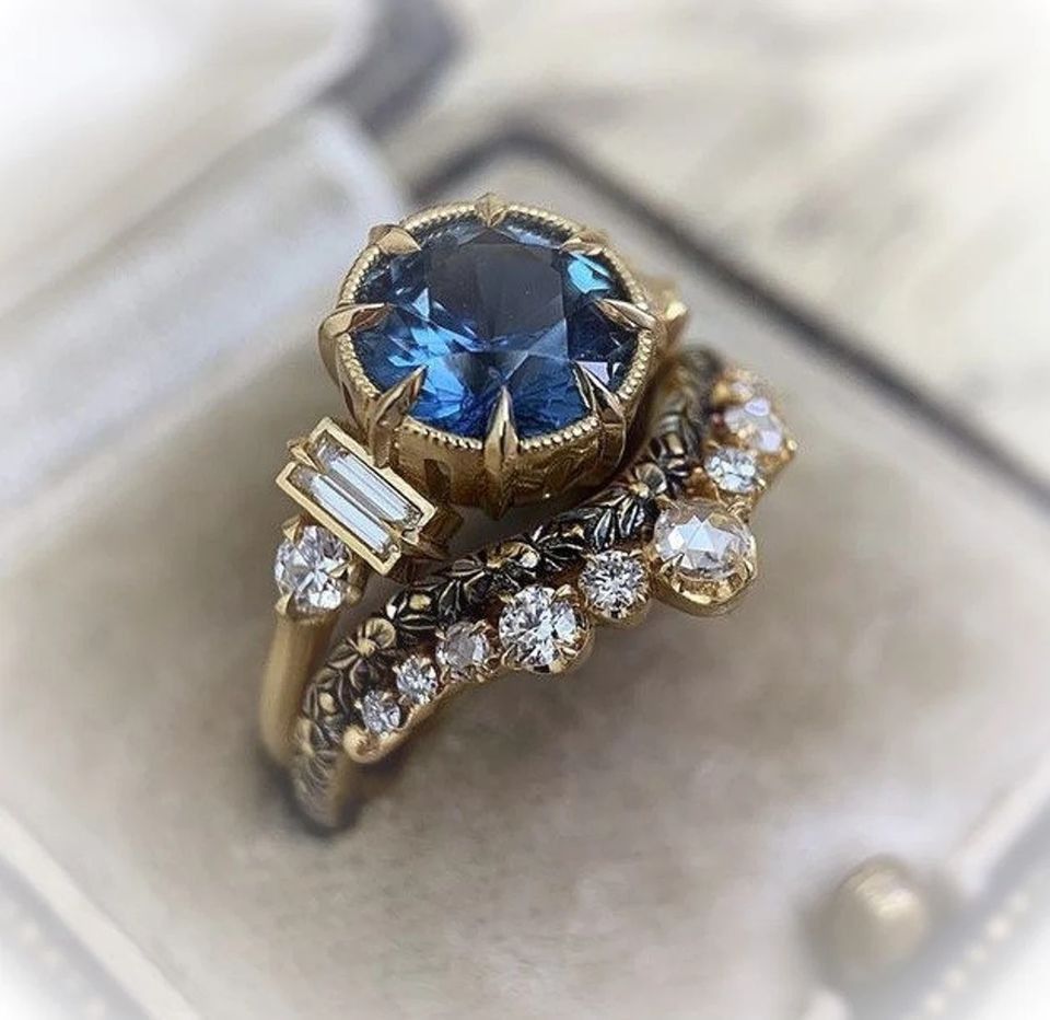 Niedlicher 2-teiliger Damen Ring im blau/ weißen Design