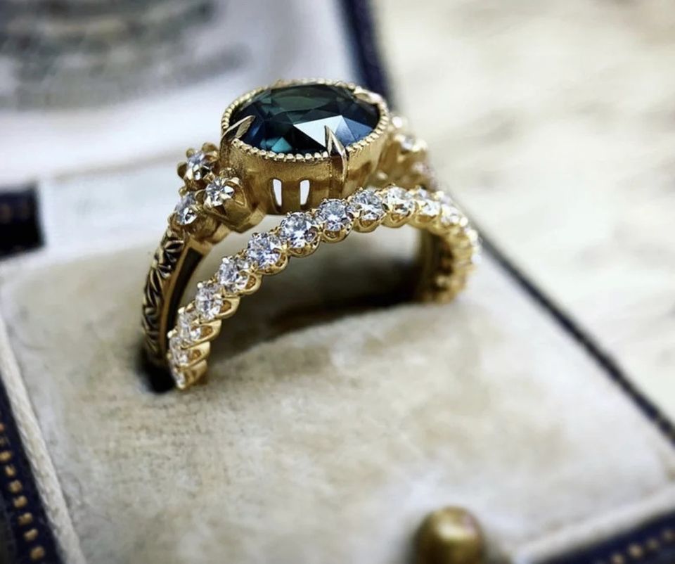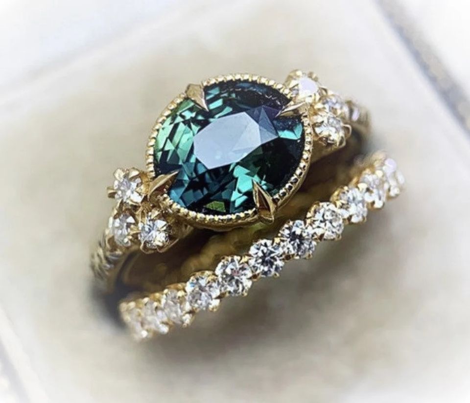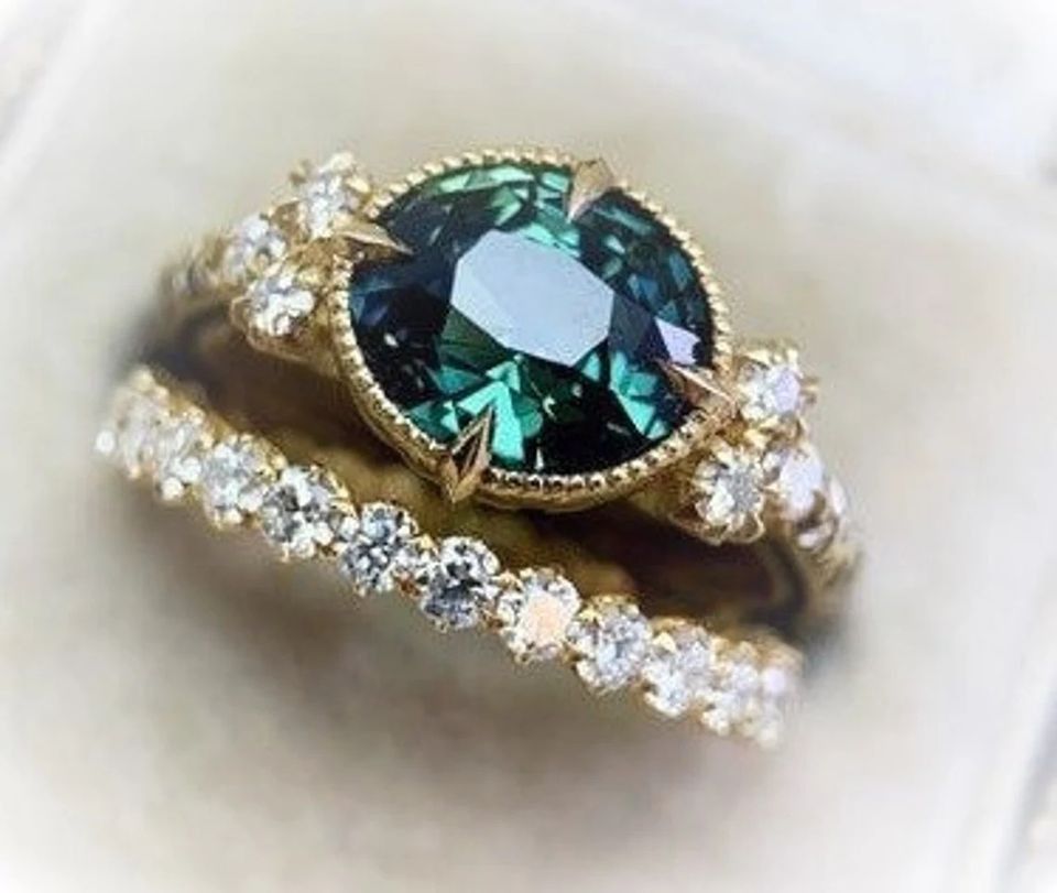 Niedlicher 2-teiliger Damen Ring im edlen Smaragd Design