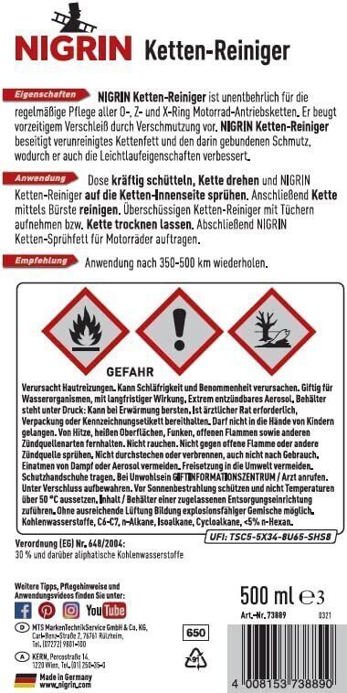 Nigrin NIGRIN 73889 Kettenreiniger Spréhdose Kettenspray Motorrad Reinigung 500 ml