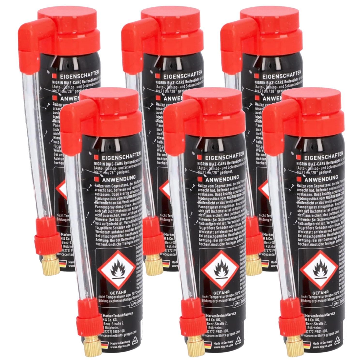 Nigrin Nigrin Bike Reifen-Dicht Pannen-Spray 6x Dichtmittel Flickzeug Reifenpilot