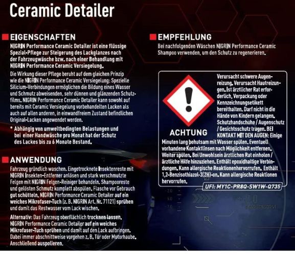 Nigrin Nigrin Ceramic Detailer Spray 750ml Lack-Pflege Keramik-Versiegelung Lack-Glanz