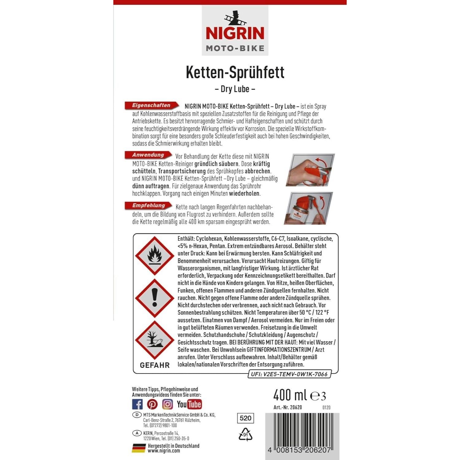 Nigrin Nigrin Moto-Bike Ketten-Fett Sprüh-Fett Spray 400ml Motorrad O Z X Ring-Kette