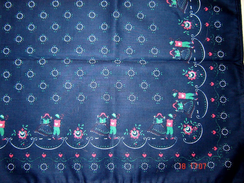. Bandana Nikituch Halstuch Kopftuch Haarband Stirnband 100% Baumwolle feine Baumwoll Qualität Batist Größe ca 57 x 57 cm wunderschönes Tuch,im Modeldruck ,Bauernmalerei Bordüre mit Herzchen und stilisierten Edelweiß stilisierten Rosen und tanzendes Trachtenpaar in der Mitte auf marineblauem Grund s