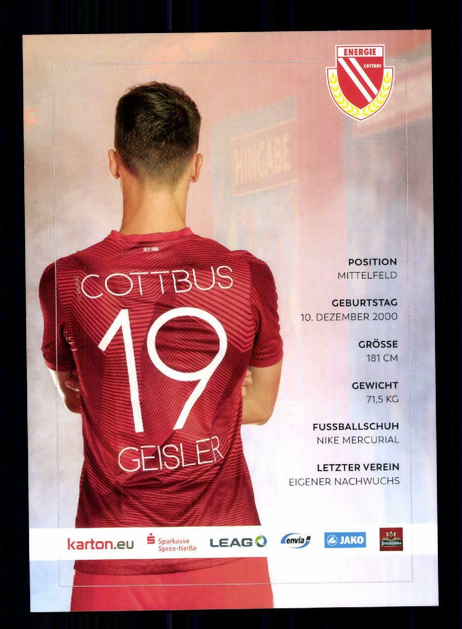 Niklas Geisler Autogrammkarte Energie Cottbus 2020-21 Original Signiert