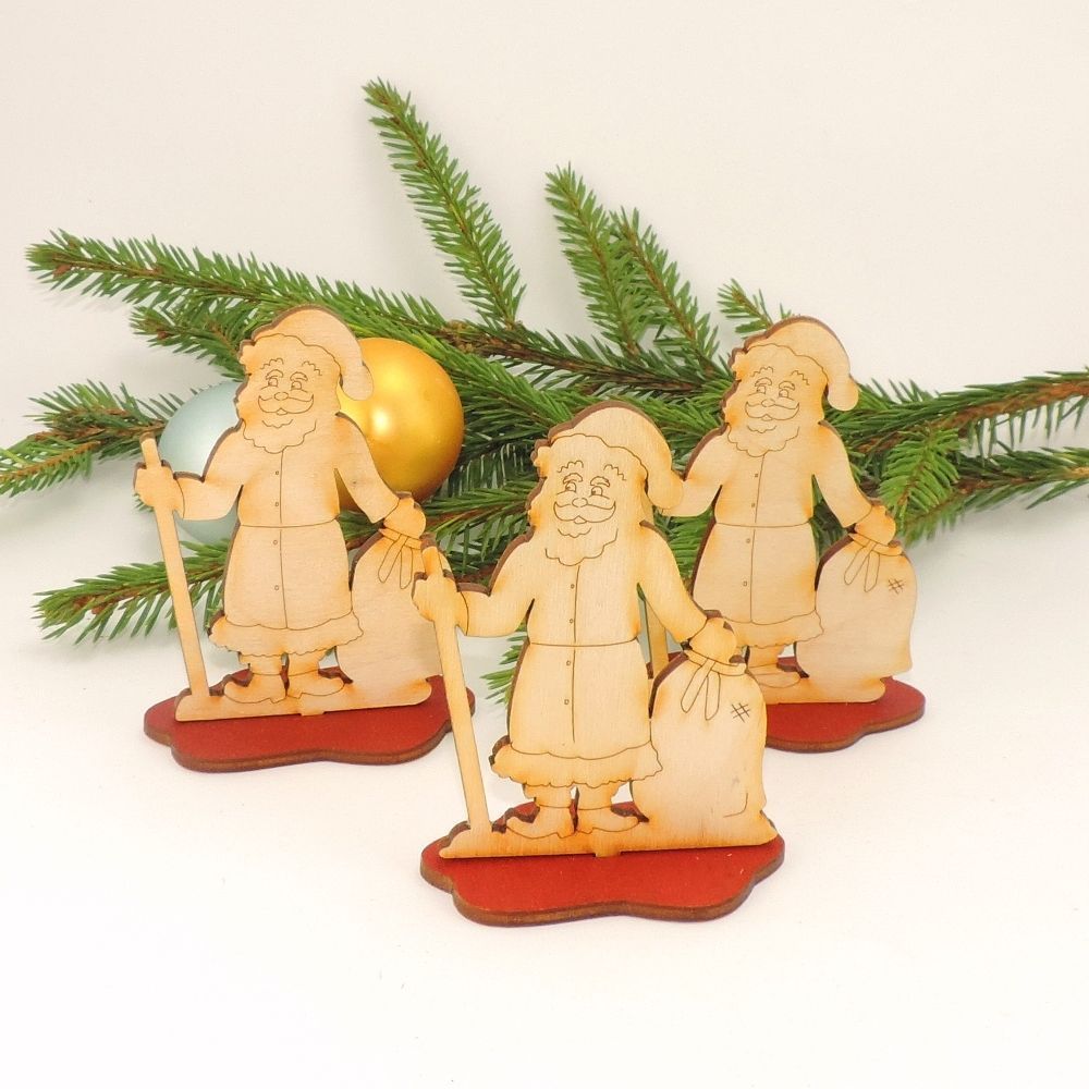 Nikolaus mit rotem Fuß 9cm 3 St. Holz Natur Advent Christmas Weihnachtsmann