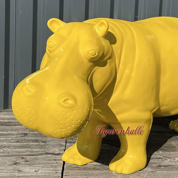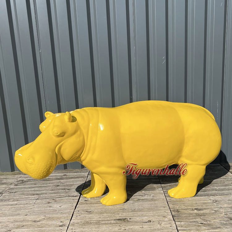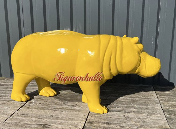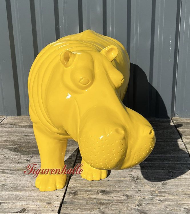 Nilpferd Flusspferd Figur Statue Aufstellfigur Deko Design Skulptur Garten gelb