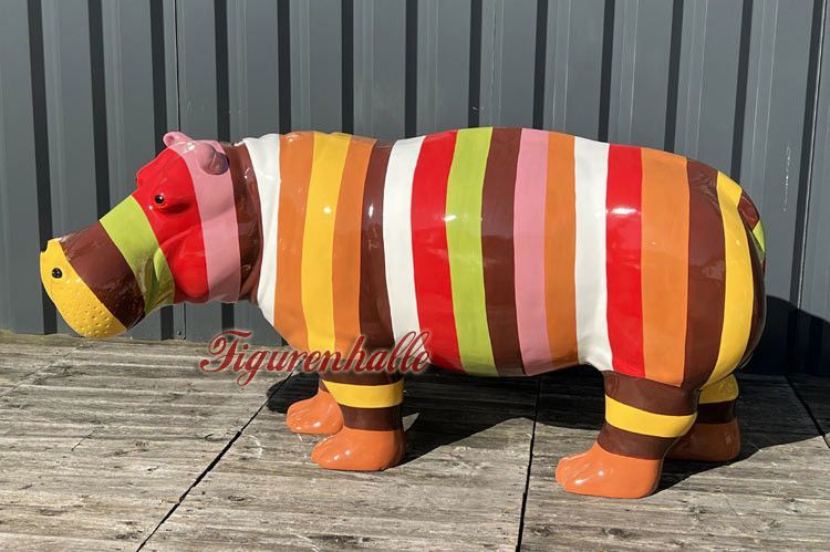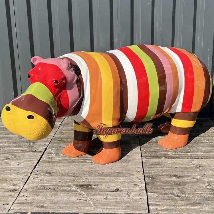 Nilpferd Flusspferd Figur Statue Pop Art Deko Moderne Design Skulptur Garten bunt