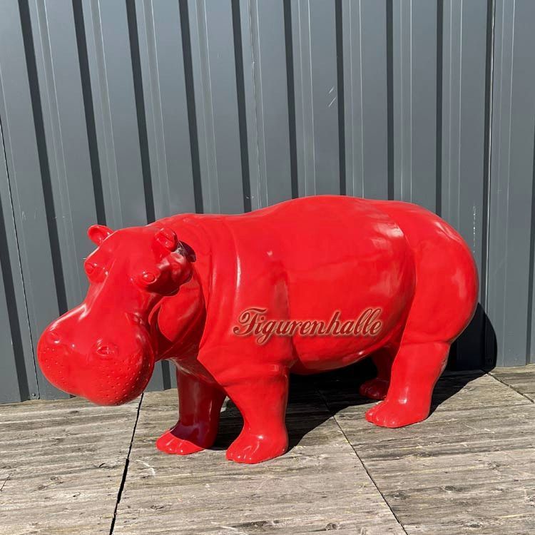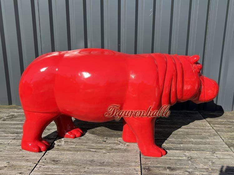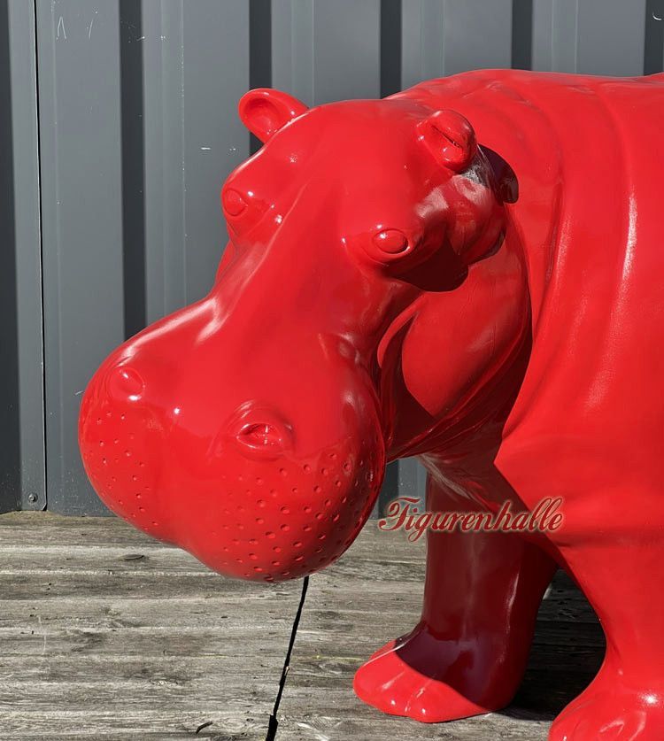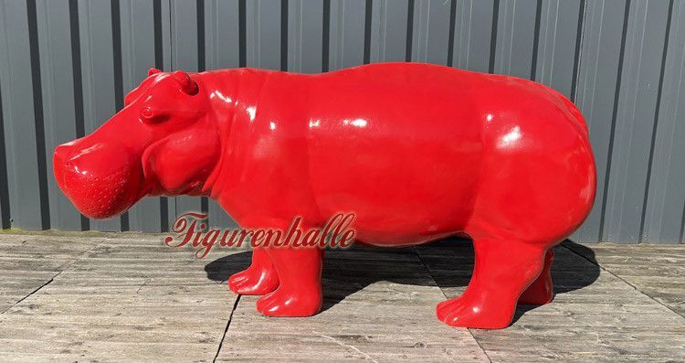 Nilpferd Flusspferd Figur Statue Pop Art Deko Moderne Design Skulptur Garten rot
