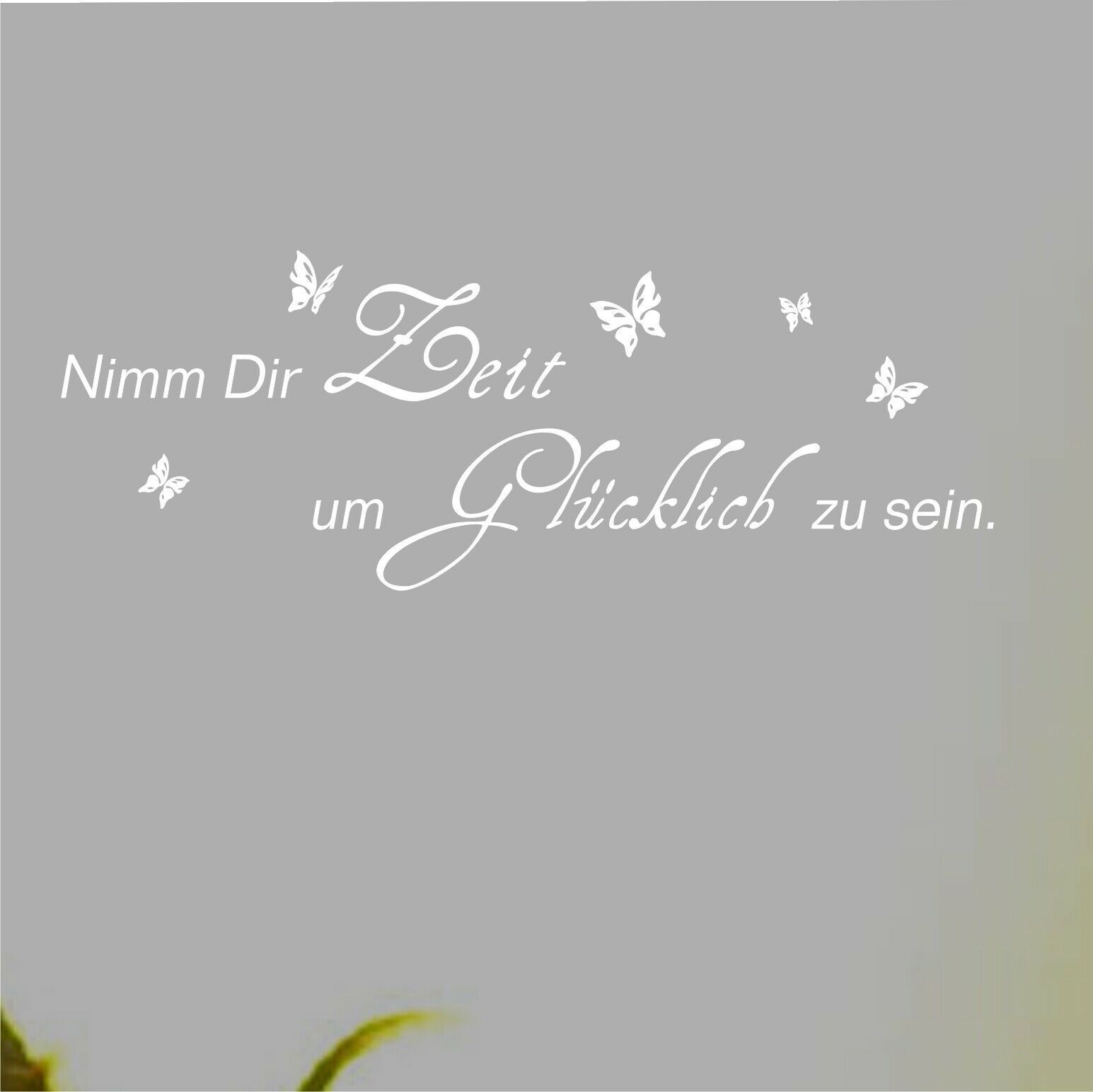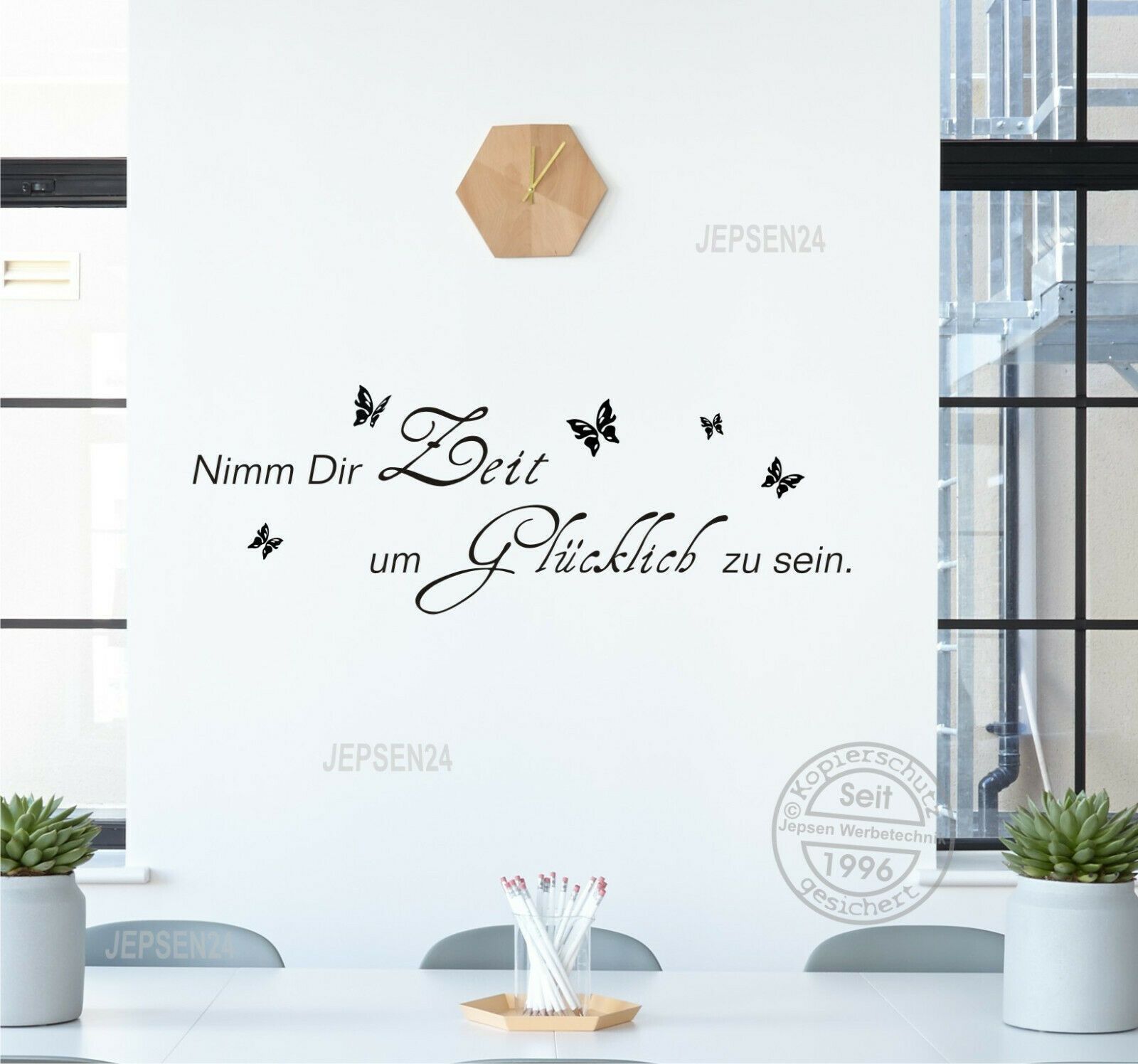 Nimm Dir Zeit um Glücklich zu sein + Schmetterlinge - Wandtattoo 80x32cm Z050