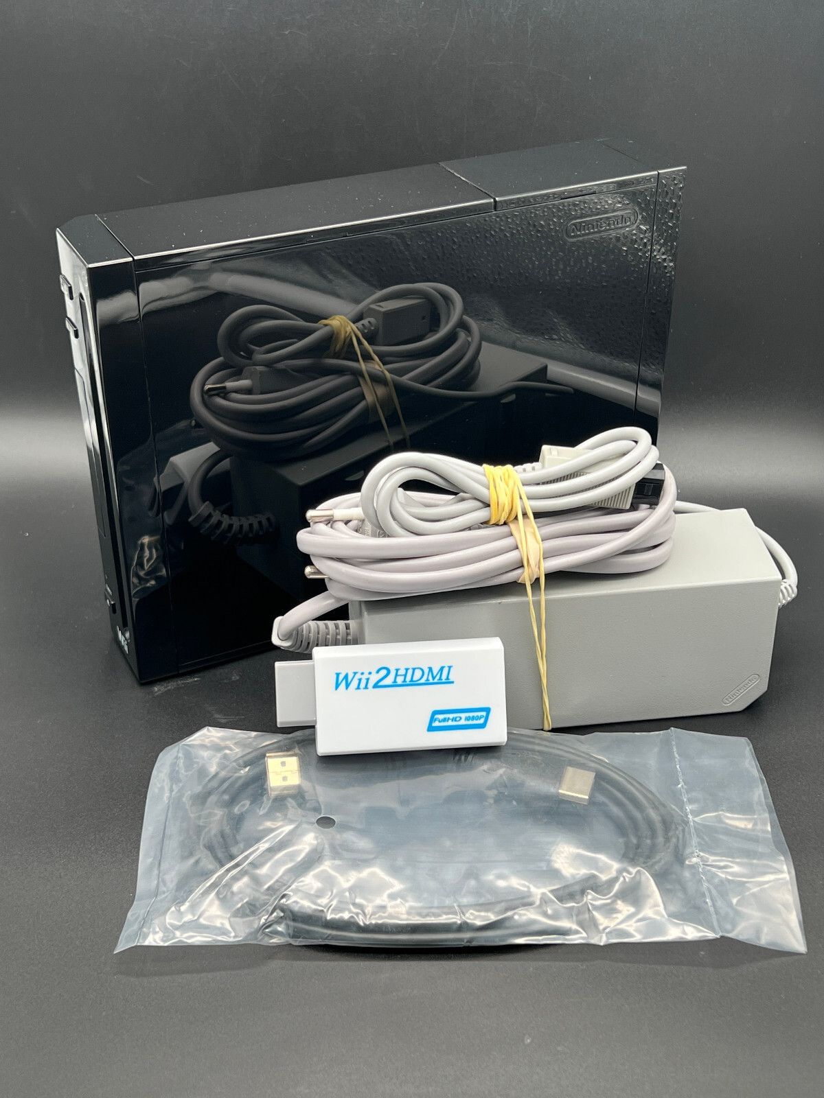Nintendo Wii Konsole Set Schwarz refurbished mit HDMI Adapter