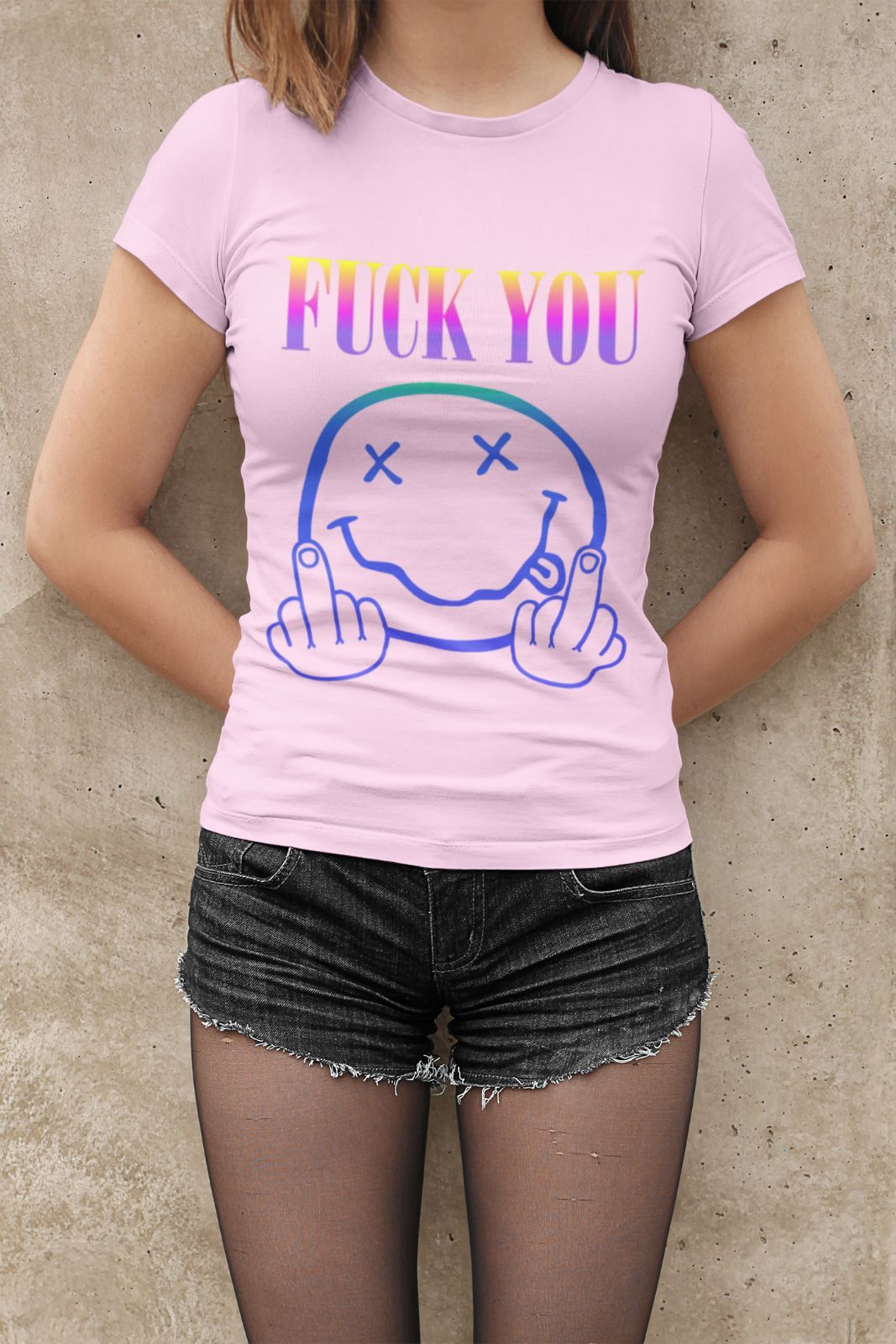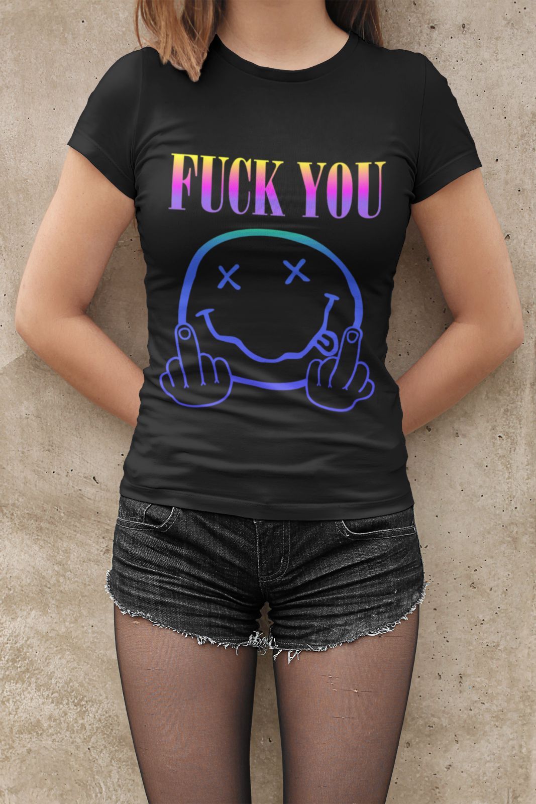 Nirvana Parodie Damen T-Shirt Tailliert Bio-Baumwolle FUCK YOU Mittelfinger